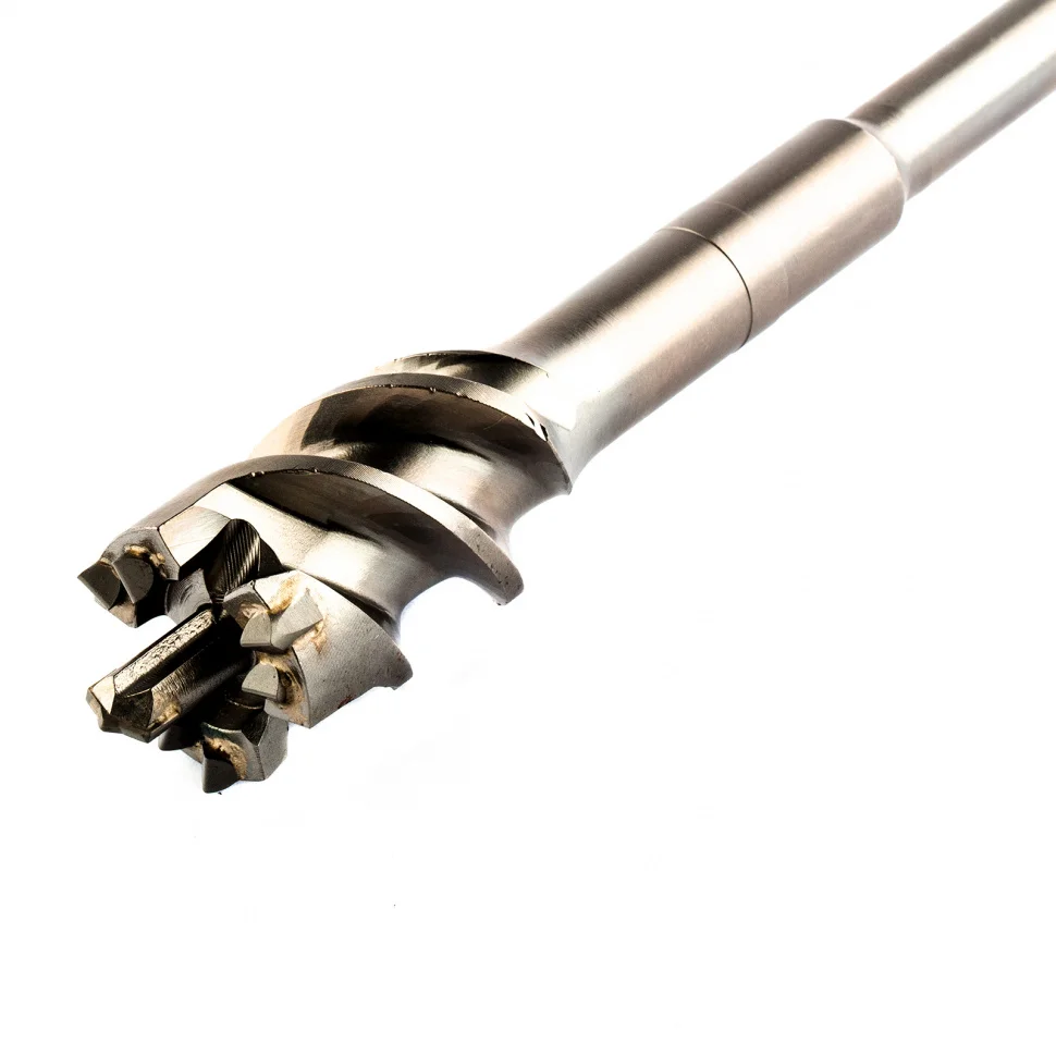 Проломной бур Matrix 712456 SDS MAX позволяет получать сквозные отверстия диаметром 4,5 см и длиной 60 см в стенах из кирпича и бетона, полах, перекрытиях. Применяется совместно с высокомощными перфораторами SDS Max. Он оптимально подходит для прокладки газо- и водопровода, электрических коммуникаций, магистралей кондиционеров.ПреимуществаРежущая пластина изготовлена из сверхтвердого сплава ВК8 80-90 HRC с добавлением кобальта, поэтому выдерживает высокие нагрузки и продлевает срок службы бура.Особая конструкция головки позволяет буру проходить армированный бетон без риска деформации.Радиальное и торцевое биение в процессе работы минимизируются за счет цельной конструкции бура, поэтому исключается отклонение бура от заданной оси.Тело бура изготовлено из легированной стали 40Х, благодаря чему инструмент не ржавеет и не ломается.Глубокие спиральные канавки эффективно отводят шлам, обеспечивая высокую скорость работы независимо от глубины сверления.