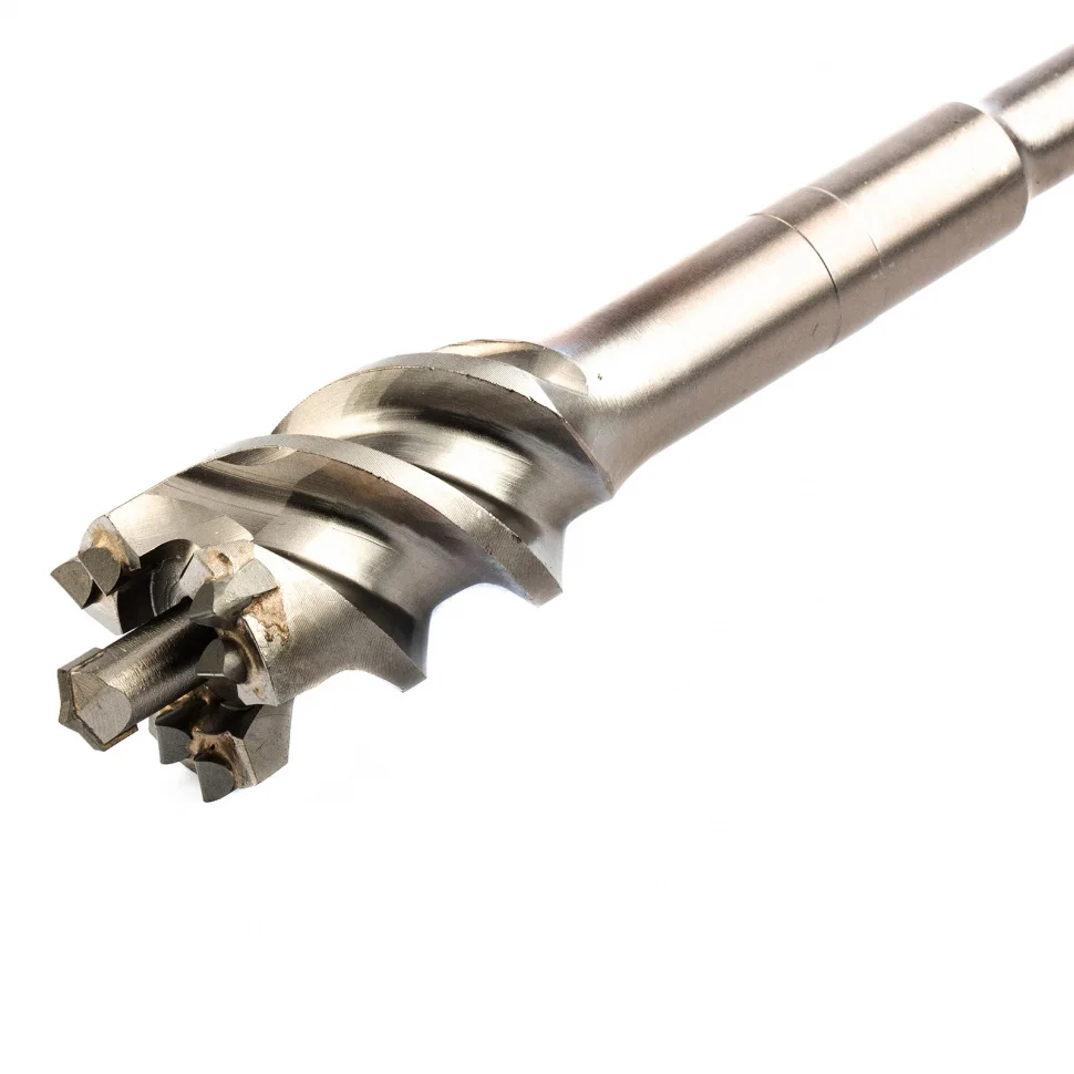Проломной бур Matrix 712458 SDS MAX позволяет получать сквозные отверстия диаметром 4,5 см и длиной 80 см в стенах из кирпича и бетона, полах, перекрытиях. Применяется совместно с высокомощными перфораторами SDS Max. Он оптимально подходит для прокладки газо- и водопровода, электрических коммуникаций, магистралей кондиционеров.ПреимуществаРежущая пластина изготовлена из сверхтвердого сплава ВК8 80-90 HRC с добавлением кобальта, поэтому выдерживает высокие нагрузки и продлевает срок службы бура.Особая конструкция головки позволяет буру проходить армированный бетон без риска деформации.Радиальное и торцевое биение в процессе работы минимизируются за счет цельной конструкции бура, поэтому исключается отклонение бура от заданной оси.Тело бура изготовлено из легированной стали 40Х, благодаря чему инструмент не ржавеет и не ломается.Глубокие спиральные канавки эффективно отводят шлам, обеспечивая высокую скорость работы независимо от глубины сверления.