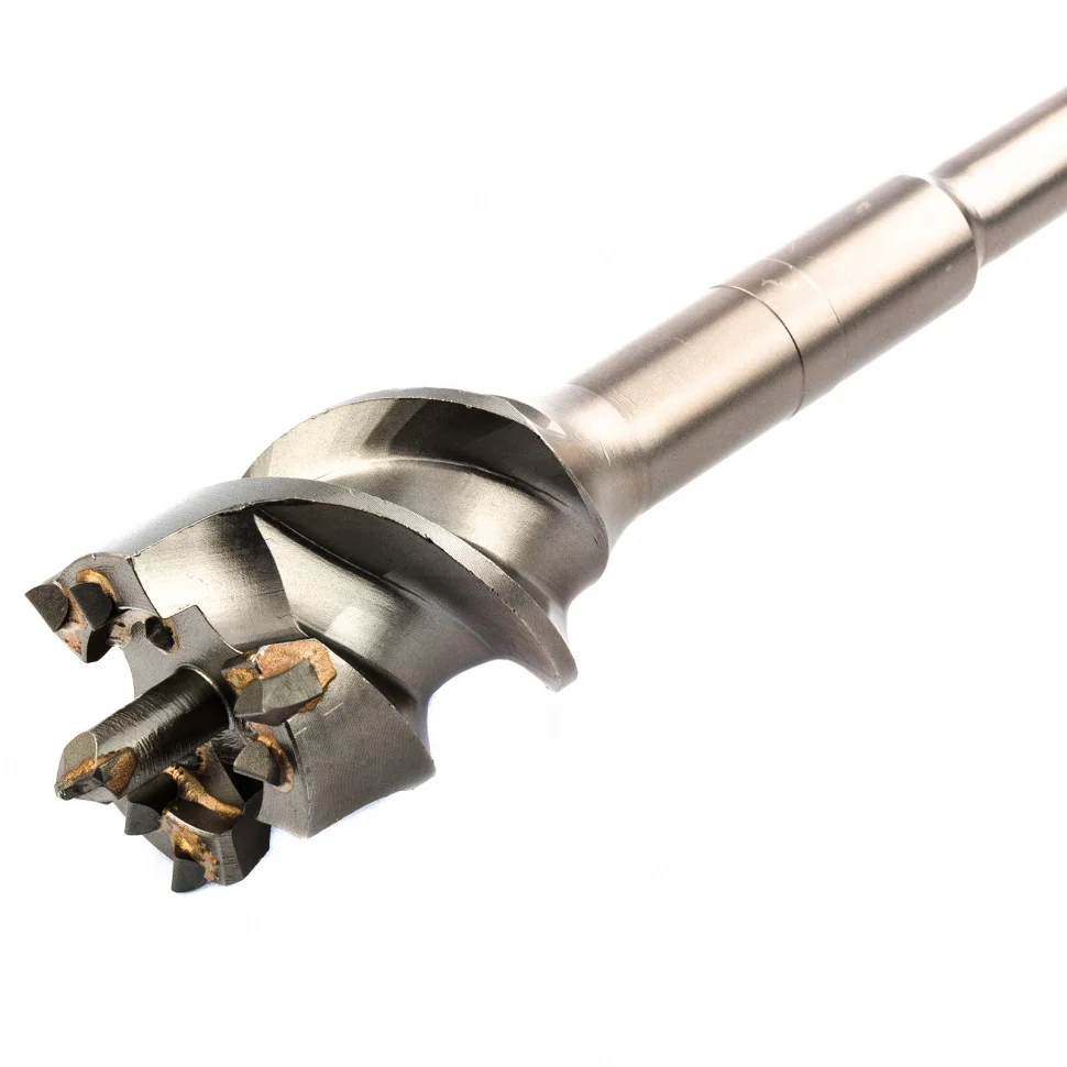 Проломной бур Matrix 712568 SDS MAX позволяет получать сквозные отверстия диаметром 5,5 см и длиной 100 см в стенах из кирпича и бетона, полах, перекрытиях. Применяется совместно с высокомощными перфораторами SDS Max. Он оптимально подходит для прокладки газо- и водопровода, электрических коммуникаций, магистралей кондиционеров.ПреимуществаРежущая пластина изготовлена из сверхтвердого сплава ВК8 80-90 HRC с добавлением кобальта, поэтому выдерживает высокие нагрузки и продлевает срок службы бура.Особая конструкция головки позволяет буру проходить армированный бетон без риска деформации.Радиальное и торцевое биение в процессе работы минимизируются за счет цельной конструкции бура, поэтому исключается отклонение бура от заданной оси.Тело бура изготовлено из легированной стали 40Х, благодаря чему инструмент не ржавеет и не ломается.Глубокие спиральные канавки эффективно отводят шлам, обеспечивая высокую скорость работы независимо от глубины сверления.