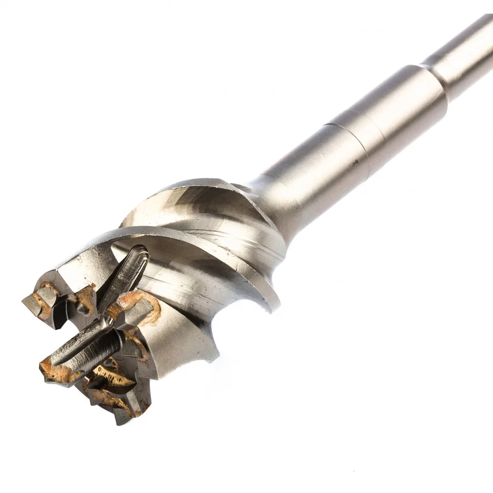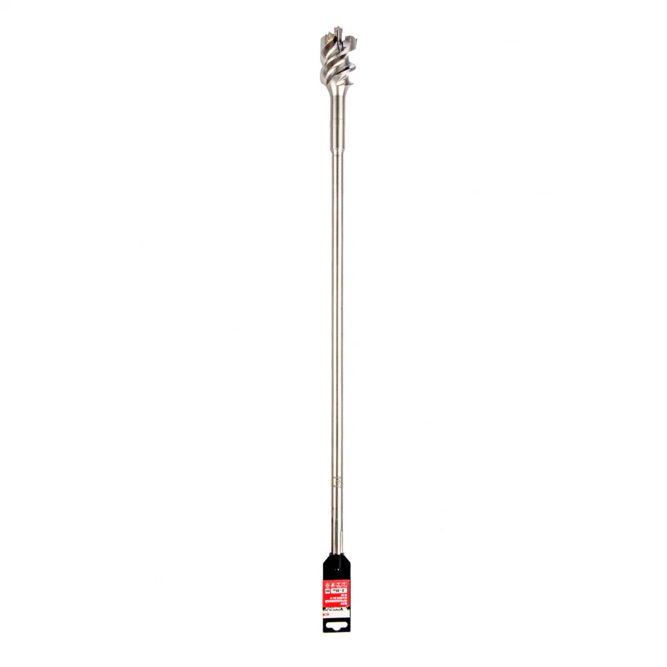 Проломной бур Matrix 712558 SDS MAX позволяет получать сквозные отверстия диаметром 5,5 см и длиной 80 см в стенах из кирпича и бетона, полах, перекрытиях. Применяется совместно с высокомощными перфораторами SDS Max. Он оптимально подходит для прокладки газо- и водопровода, электрических коммуникаций, магистралей кондиционеров.ПреимуществаРежущая пластина изготовлена из сверхтвердого сплава ВК8 80-90 HRC с добавлением кобальта, поэтому выдерживает высокие нагрузки и продлевает срок службы бура.Особая конструкция головки позволяет буру проходить армированный бетон без риска деформации.Радиальное и торцевое биение в процессе работы минимизируются за счет цельной конструкции бура, поэтому исключается отклонение бура от заданной оси.Тело бура изготовлено из легированной стали 40Х, благодаря чему инструмент не ржавеет и не ломается.Глубокие спиральные канавки эффективно отводят шлам, обеспечивая высокую скорость работы независимо от глубины сверления.