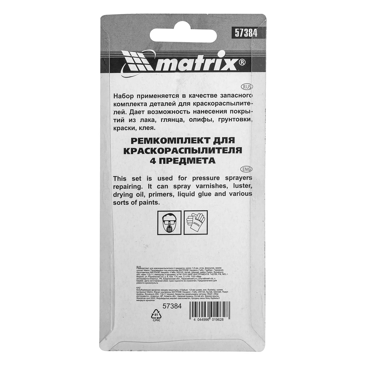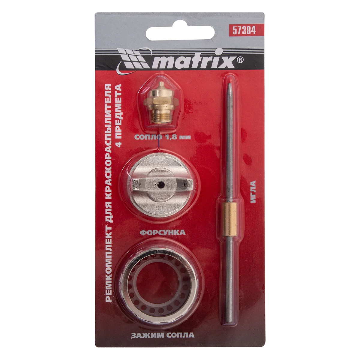 Ремкомплект для краскораспылителя 4 предмета : сопло 1.8 мм + игла + форсунка + зажим сопло Matrix 57384