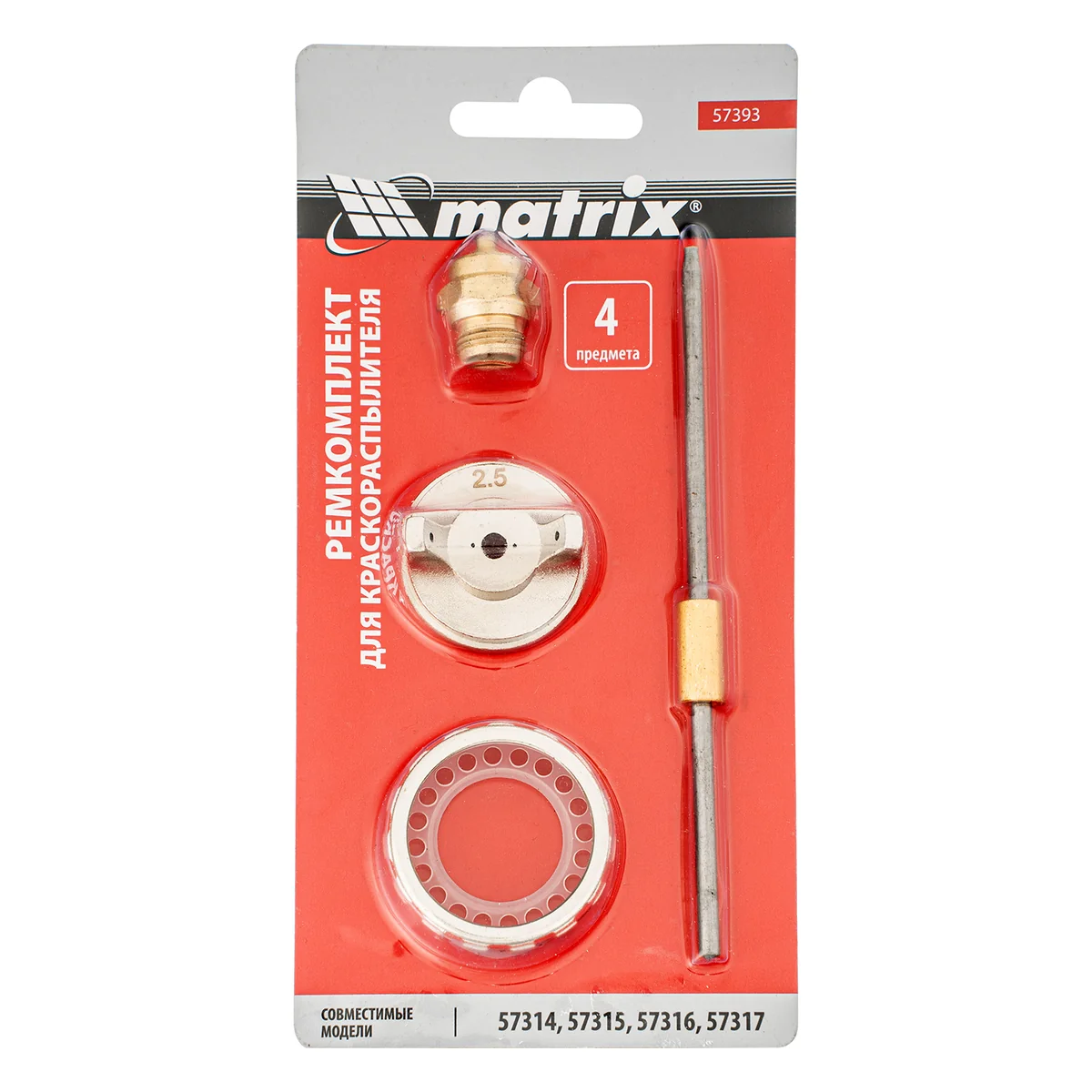 Ремкомплект для краскораспылителя 4 предмета: сопло 2,5 мм, игла, форсунка, зажим сопла Matrix 57393