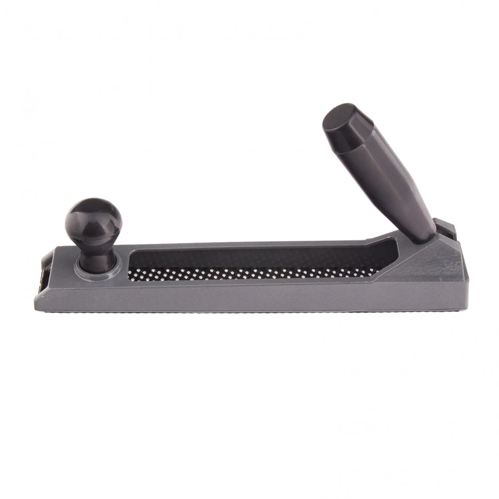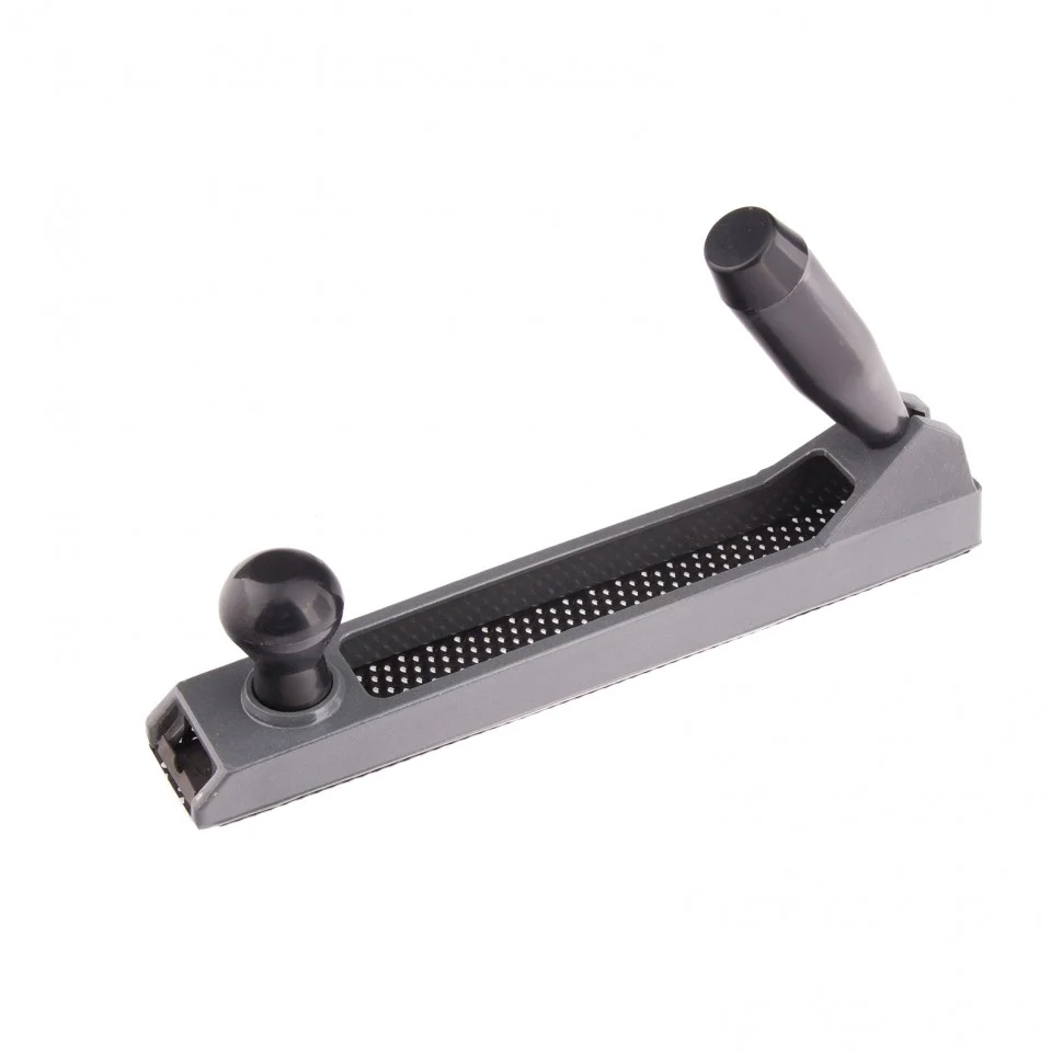 Металлический обдирочный рубанок Matrix 879165 с размером полотна 250 х 42 мм, с переставной ручкой, служит для выравнивания кромок листов гипсокартона, а также подходит для обработки пластмассы, фибергласа и мягкой древесины. Корпус из прочного алюминиевого сплава обеспечивает инструменту долговечность. Рубанок применяют при выполнении ремонтных и отделочных работ.ПреимуществаПереставную пластиковую рукоятку можно зафиксировать под удобным углом, что снижает утомляемость и повышает комфортность работы.Отверстия в рабочем полотне способствуют эффективному отводу стружки, что увеличивает производительность и повышает рабочий ресурс инструмента.Благодаря специальным креплениями полотно легко можно заменить.