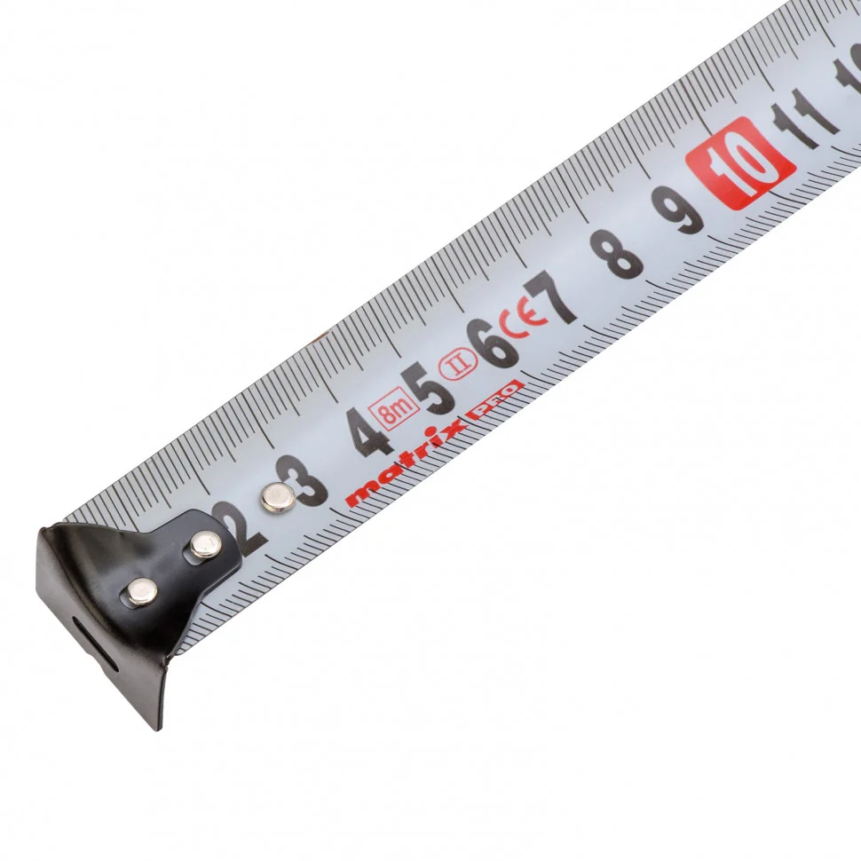 Рулетка Matrix PRO Extra Wide 32586, 8 м х 27 мм, в двухкомпонентном корпусе, — инструмент для ручного измерения размеров и расстояний. Полотно шириной 27 мм обладает значительной величиной вылета, что упрощает работу в труднодоступных местах. Двухкомпонентный корпус снижает риск поломки при падении или ударе. Рулетка будет полезна на строительной площадке или во время ремонта, а также пригодится дома или на даче.ПреимуществаПодвижный зацеп «true zero» позволяет проводить измерения от ноля, без учета толщины крючка.Крупные цифры хорошо видны, что облегчает проведение измерений.Фиксатор полотна удерживает ленту в вытянутом положении, позволяя зафиксировать результаты.Клипса-зажим позволяет закрепить рулетку на поясе, освободив руки.