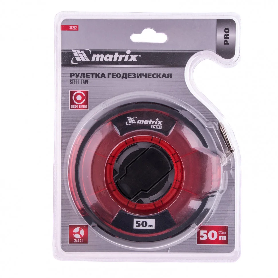 Геодезическая рулетка Matrix PRO 31282 в закрытом корпусе, 50 м х 12,5 мм, со стальной лентой и односторонней шкалой, применяется для проведения замеров на открытых участках. Основной материал корпуса — поликарбонат с отличными показателями прочности, поэтому инструмент не сломается в случае ударов и падений. Рулетка оснащена кольцом-зацепом для удобства фиксации измерительной ленты на объекте. Пригодится во время строительных работ, обмеров садовых участков и дорог, обустройства территории.ПреимуществаНа корпусе имеются вставки из термопластичной резины, поэтому он не выскальзывает из рук.Измерительная лента изготовлена из стали, а значит, характеризуется высокой прочностью и долговечностью.Планетарный возвратный механизм имеет коэффициент передачи 3:1, поэтому лента сматывается втрое быстрее, чем у моделей с обычным механизмом.