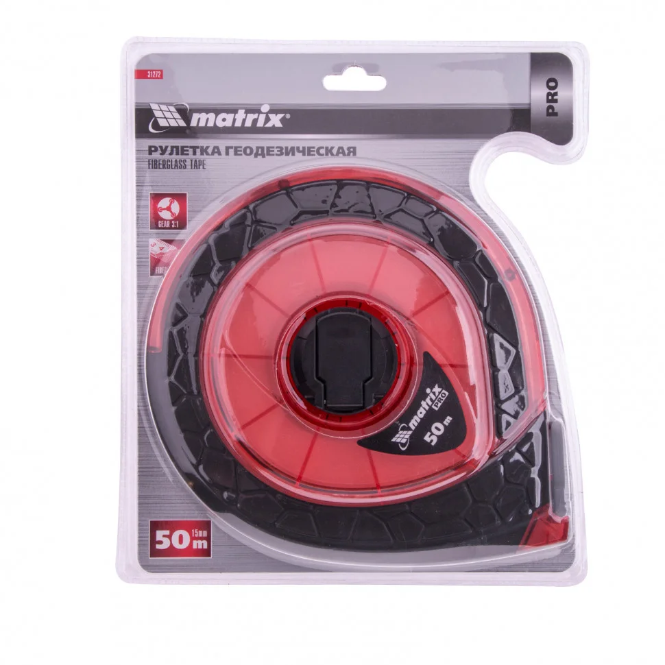 Геодезическая рулетка Matrix PRO 31272 в закрытом корпусе, 50 м х 15 мм, с фибергласовой лентой и двусторонней шкалой, используется при проведении замеров на открытых участках и строительных объектах. Будет полезна во время картографических исследований и работ по созданию ландшафтного дизайна. Двухкомпонентный корпус из поликарбоната с резиновыми вставками устойчив к повреждениям и не боится ударов и падений. Кольцо-зацеп фиксируется на поверхности, избавляя от необходимости придерживать конец ленты рукой.ПреимуществаДолговечность — фибергласовое измерительное полотно устойчиво к повреждениям.Высокая скорость сматывания ленты — рулетка оснащена планетарным механизмом с передаточным коэффициентом 3:1, втрое более эффективным по сравнению с обычными механизмами.Быстрое снятие показаний — на измерительную ленту нанесена двусторонняя шкала, упрощающая выполнение измерений.Комфорт при использовании — корпус обрезинен и не выскальзывает из рук.