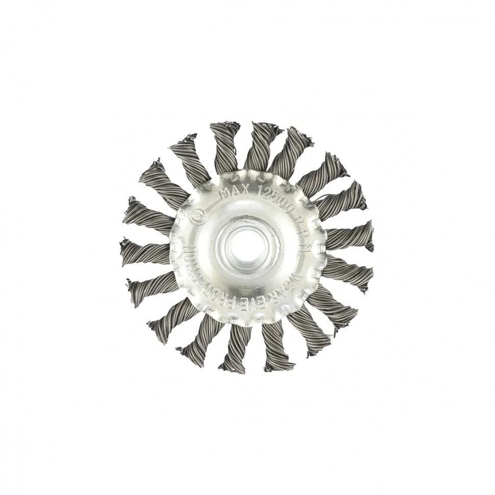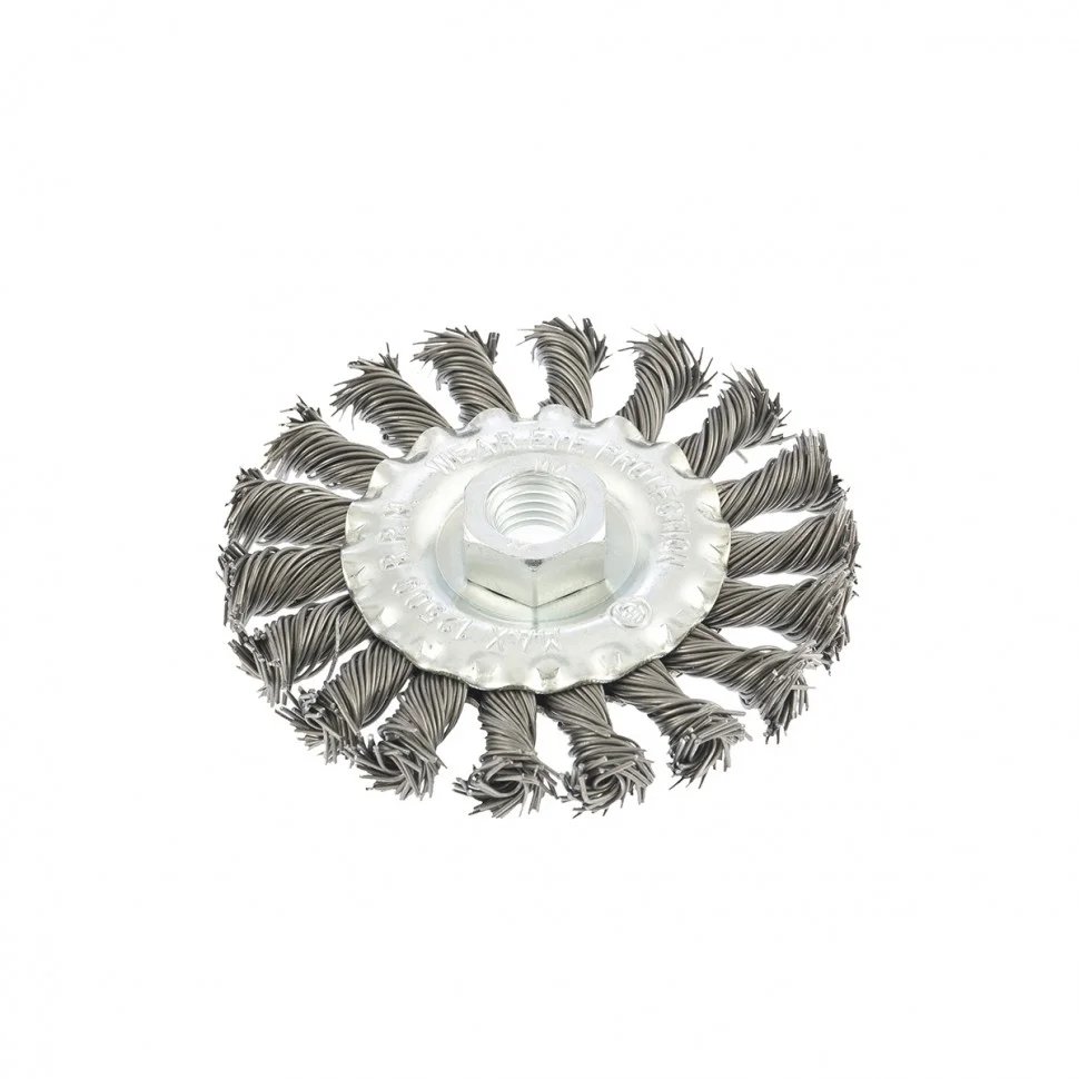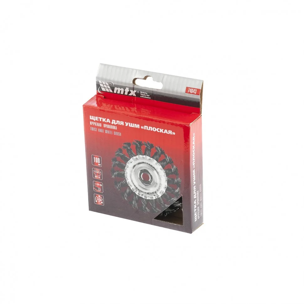 Плоская щетка для УШМ Matrix 74643 диаметром 100 мм, с крученой проволокой 0,8 мм и гайкой М14 используется для грубой (черновой) обработки поверхностей. Она устанавливается в качестве оснастки на УШМ. Благодаря щетке можно снять толстый слой ржавчины, лакокрасочных покрытий, загрязнений, а также зачистить сварные швы. За счет плоской формы ею удобно проводить обработку в труднодоступных местах: углах, изгибах и др. Эксплуатация щетки допускается на скорости не более 12500 об/мин.ПреимуществаЩетина из прочной стальной проволоки обеспечивает высокий ресурс щетки.Щетка универсальна и может использоваться для обработки различных поверхностей: металлических, в т.ч. из цветных металлов, деревянных, пластиковых.Щетина обработана маслом, а корпус покрыт цинком для повышения антикоррозионных свойств щетки.