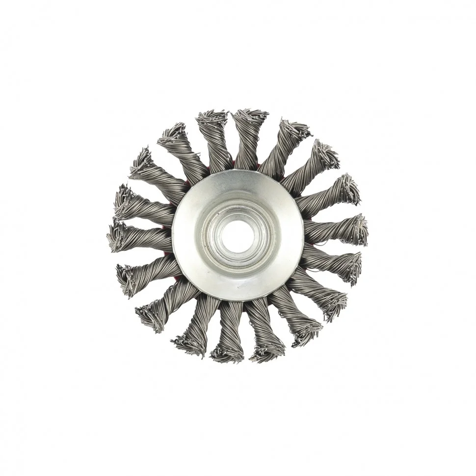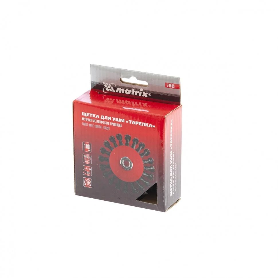 Щетка Matrix «тарелка» 74609 диаметром 100 мм, с крученой проволокой 0,5 мм, устанавливается на УШМ при помощи гайки М14. Выполнена в форме тарелки, за счет чего подходит для грубой (черновой) обработки плоских поверхностей и углов. Удаляет ржавчину, загрязнения, лакокрасочные покрытия, подходит для зачистки сварных швов. Для долгого срока службы щетки рекомендовано использование на скорости до 12500 об/мин.ПреимуществаВысокий ресурс — проволока изготовлена из высококачественной стали.Одна щетка для разных поверхностей — универсальная насадка позволяет обрабатывать различные твердые материалы: металл, древесину, пластик, бетон.Стойкость к коррозии — на корпус нанесено эмалевое покрытие, щетина покрыта маслом.