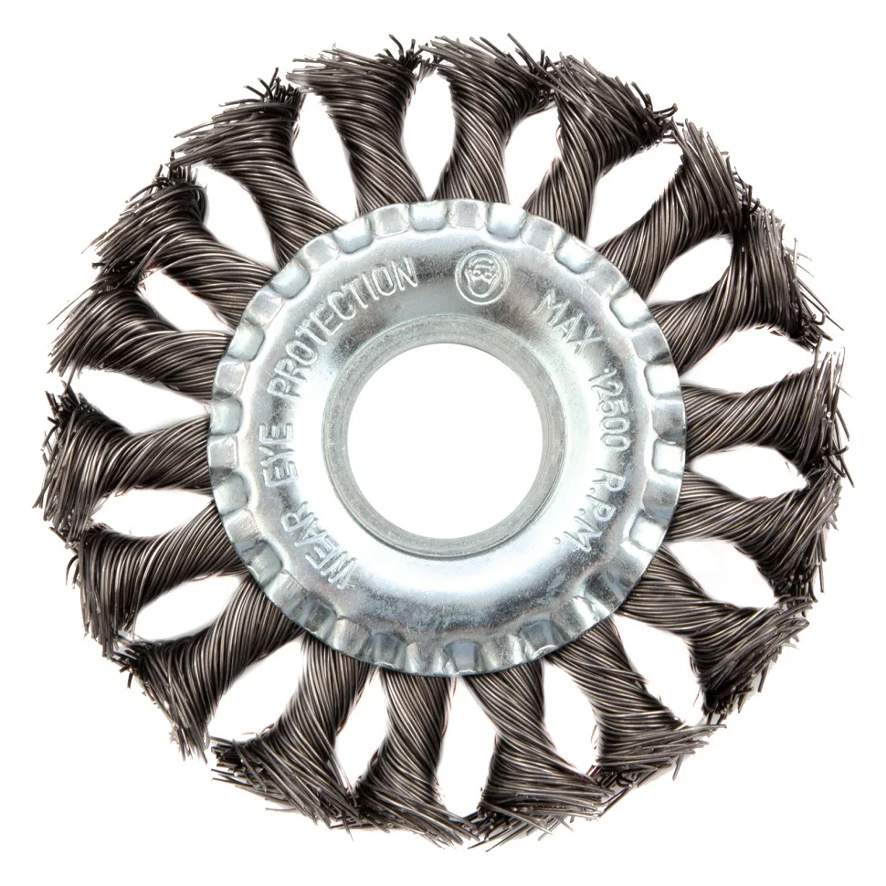 Плоская щетка Matrix 74630 диаметром 100 мм и посадкой 22,2 мм, с крученой проволокой 0,5 мм, устанавливается на вал УШМ. Щетина с крученой проволокой эффективно удаляет толстый слой ржавчины, лакокрасочных материалов и загрязнения с поверхностей при проведении грубой (черновой) обработки. Плоская форма позволяет обрабатывать труднодоступные места, в т.ч. углы и изгибы. Рекомендуется использовать щетку на оборотах не более 12500 об/мин.ПреимуществаЗа счет высококачественной нержавеющей проволоки обеспечивается долговечность щетины.Универсальная щетка рассчитана на обработку твердых поверхностей из любых материалов: металла, древесины, цветных металлов, пластика и т.д.Щетку можно использовать вне помещений, т.к. щетина покрыта маслом, а корпус оцинкован.