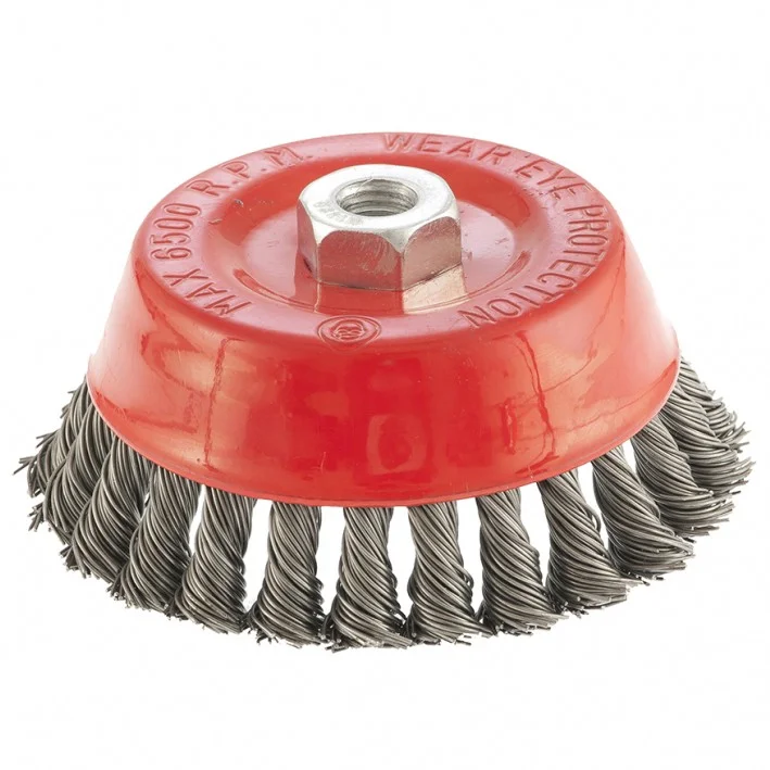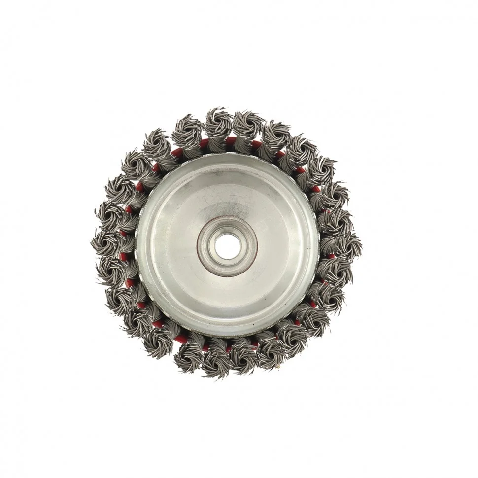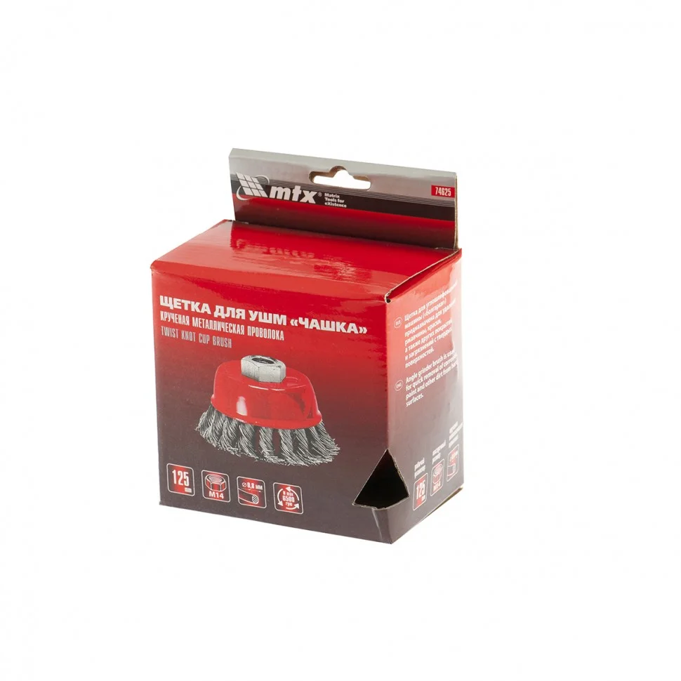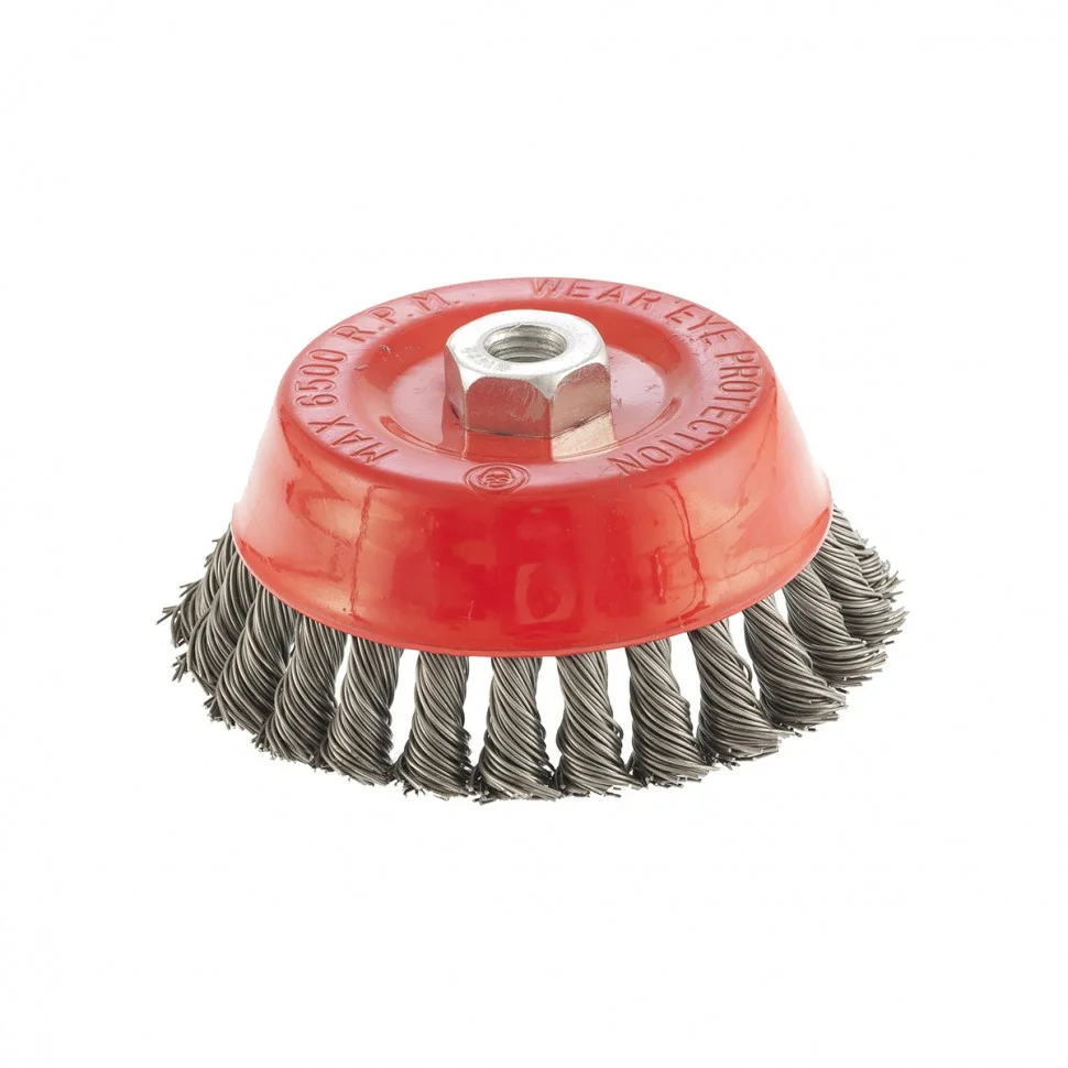 Щетка Matrix «Чашка» 74625 диаметром 125 мм, М14, с крученой проволокой 0,8 мм, применяется в качестве оснастки на УШМ. Щетина рассчитана на грубую (черновую) обработку поверхностей, более агрессивную в сравнении с щетиной 0,5 мм. Изделие подходит для удаления загрязнений, снятия толстого слоя ржавчины, ЛКМ, зачистки сварных швов. Рекомендуемая скорость использования — 6500 об/мин.ПреимуществаБлагодаря высококачественной проволоке оснастка прослужит долгое время.Благодаря форме «чашка» насадка имеет большую площадь прилегания, поэтому оптимально подходит для обработки больших поверхностей.Щетку универсального назначения можно использовать для обработки любых твердых материалов: металла, древесины, цветных металлов, пластика и др.Корпус покрыт эмалью, а щетина — маслом, за счет чего щетка устойчива к коррозии.