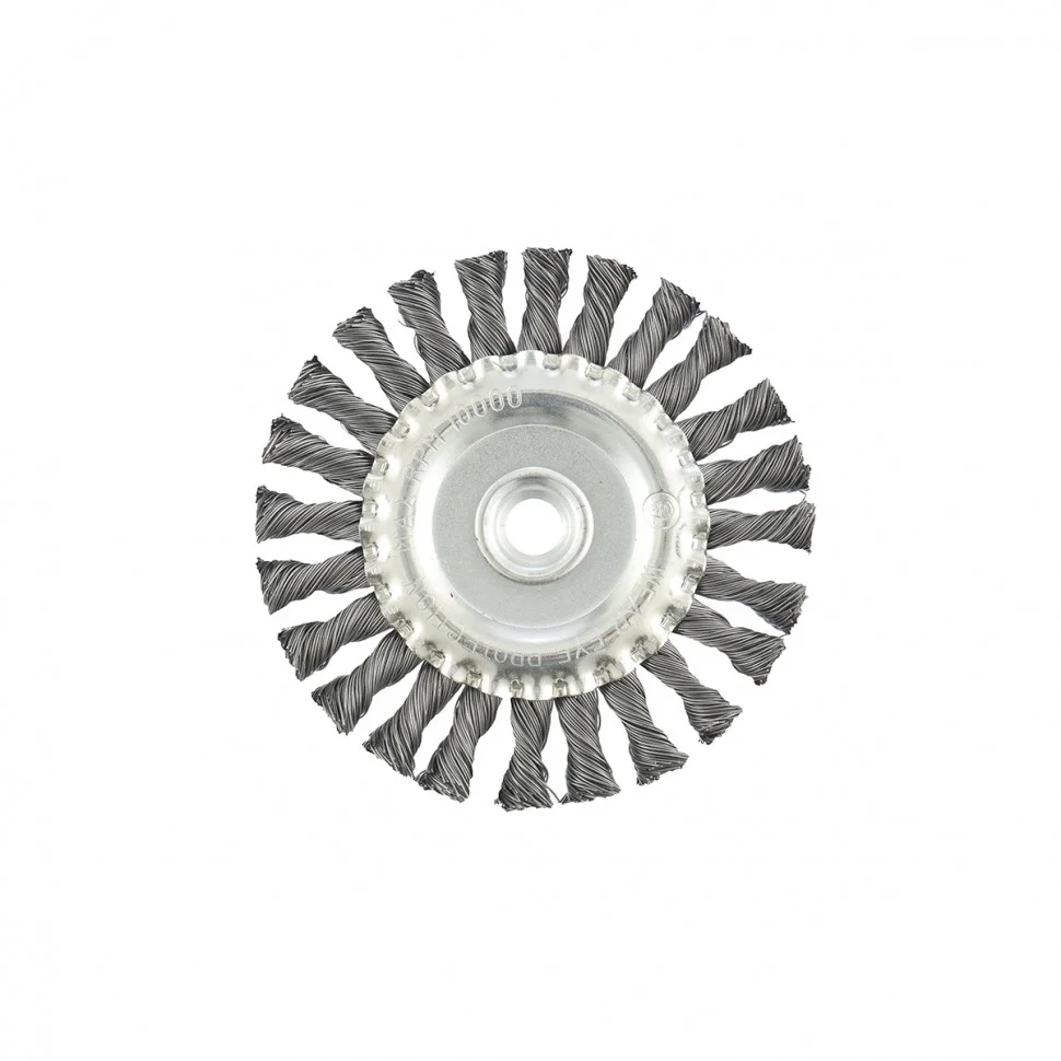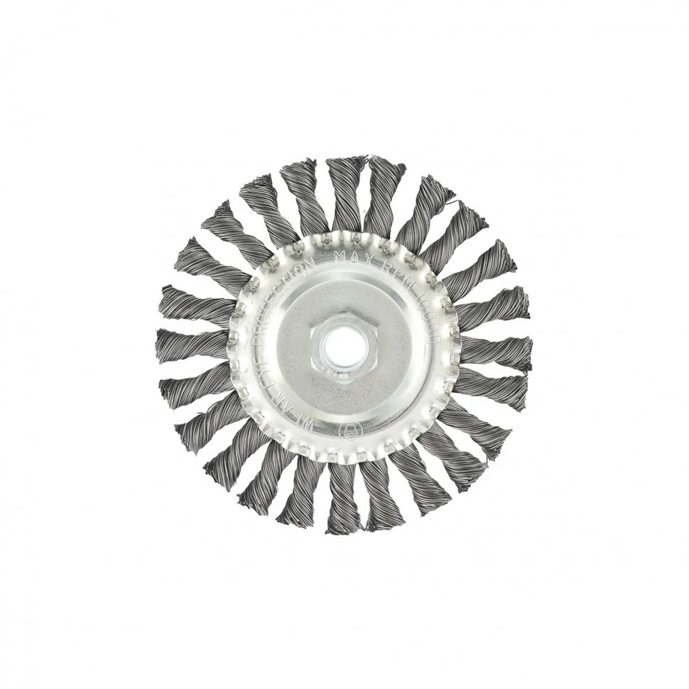 Плоская щетка для УШМ Matrix 74640 диаметром 125 мм, с крученой проволокой 0,5 мм и гайкой М14 используется для грубой (черновой) обработки поверхностей. Она устанавливается в качестве оснастки на УШМ. Благодаря щетке можно снять толстый слой ржавчины, лакокрасочных покрытий, загрязнений, а также зачистить сварные швы. За счет плоской формы ею удобно проводить обработку в труднодоступных местах: углах, изгибах и др. Эксплуатация щетки допускается на скорости не более 10000 об/мин.ПреимуществаЩетина из прочной стальной проволоки обеспечивает высокий ресурс щетки.Щетка универсальна и может использоваться для обработки различных поверхностей: металлических, в т.ч. из цветных металлов, деревянных, пластиковых.Щетина обработана маслом, а корпус покрыт цинком для повышения антикоррозионных свойств щетки.