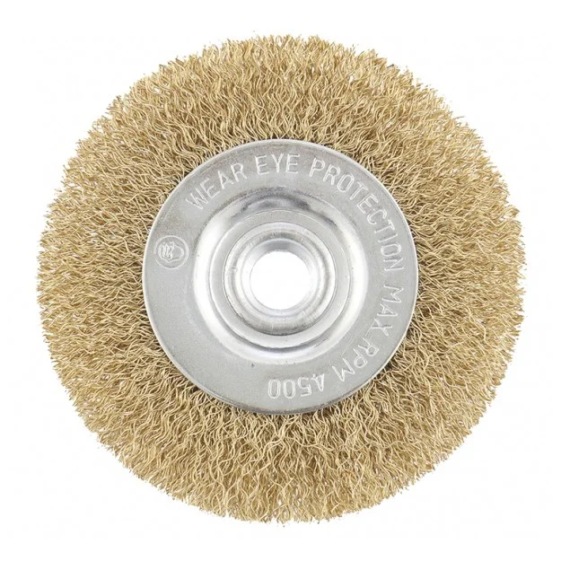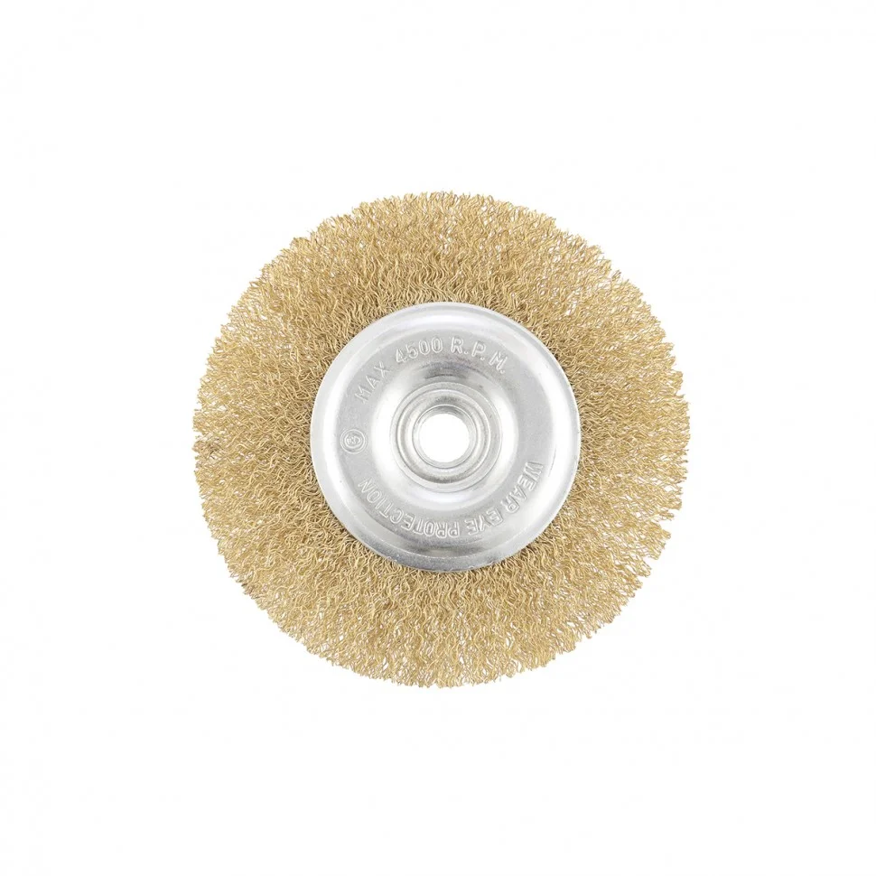 Плоская щетка Matrix 74651 диаметром 125 мм, с латунированной витой проволокой, крепится к валу УШМ с помощью гайки М14. Она рассчитана на щадящую обработку поверхностей, снятие толстого слоя ржавчины, лакокрасочных покрытий, удаления окалины и въевшихся загрязнений. Плоской щеткой удобно работать в труднодоступных местах: углах изгибах. Для продления срока службы щетки рекомендуется работать на скорости не более 6500 об/мин.ПреимуществаВитая проволока из стали хорошо держит форму и обеспечивает долговечность щетины.Оснастка подходит для обработки различных материалов: древесины, пластика, металлических поверхностей, в т.ч. цветных металлов и т.д.Оцинкованный корпус и латунированная щетина защищены от коррозии.