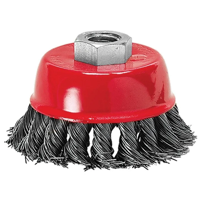 Щетка Matrix «Чашка» 74629 диаметром 150 мм, М14, с крученой проволокой 0,5 мм, применяется в качестве оснастки на УШМ. Щетина рассчитана на грубую (черновую) обработку поверхностей. Изделие подходит для удаления загрязнений, снятия толстого слоя ржавчины, ЛКМ, зачистки сварных швов. Рекомендуемая скорость использования — 4500 об/мин.ПреимуществаБлагодаря высококачественной проволоке оснастка прослужит долгое время.Благодаря форме «чашка» насадка имеет большую площадь прилегания, поэтому оптимально подходит для обработки больших поверхностей.Щетку универсального назначения можно использовать для обработки любых твердых материалов: металла, древесины, цветных металлов, пластика и др.Корпус покрыт эмалью, а щетина — маслом, за счет чего щетка устойчива к коррозии.