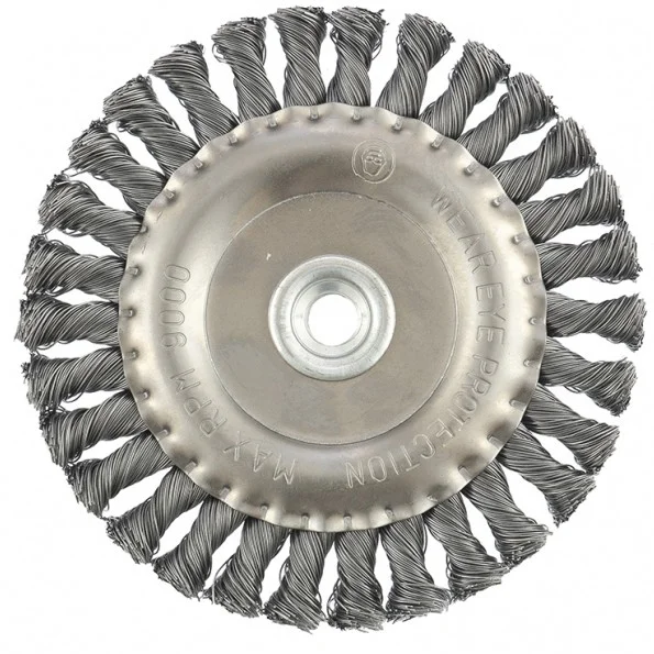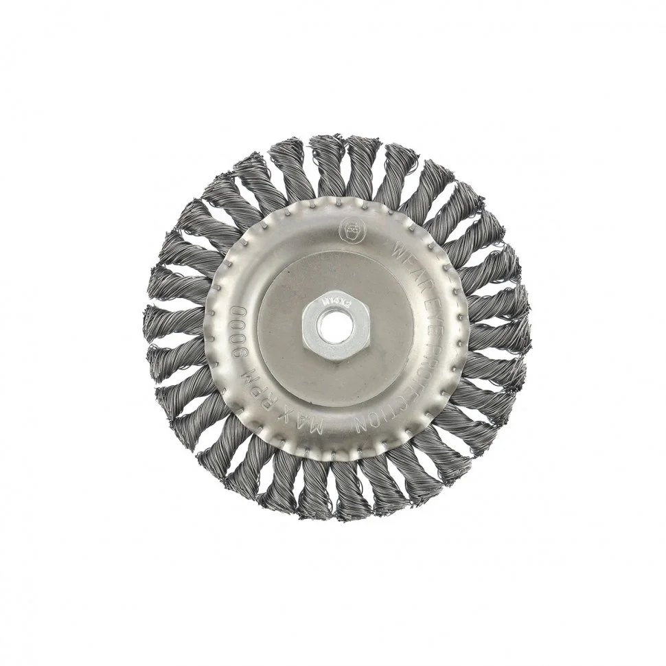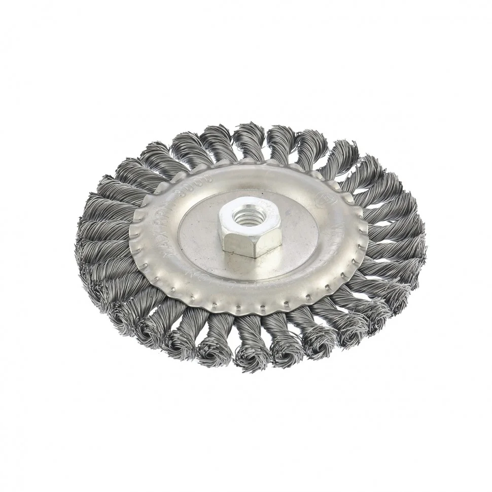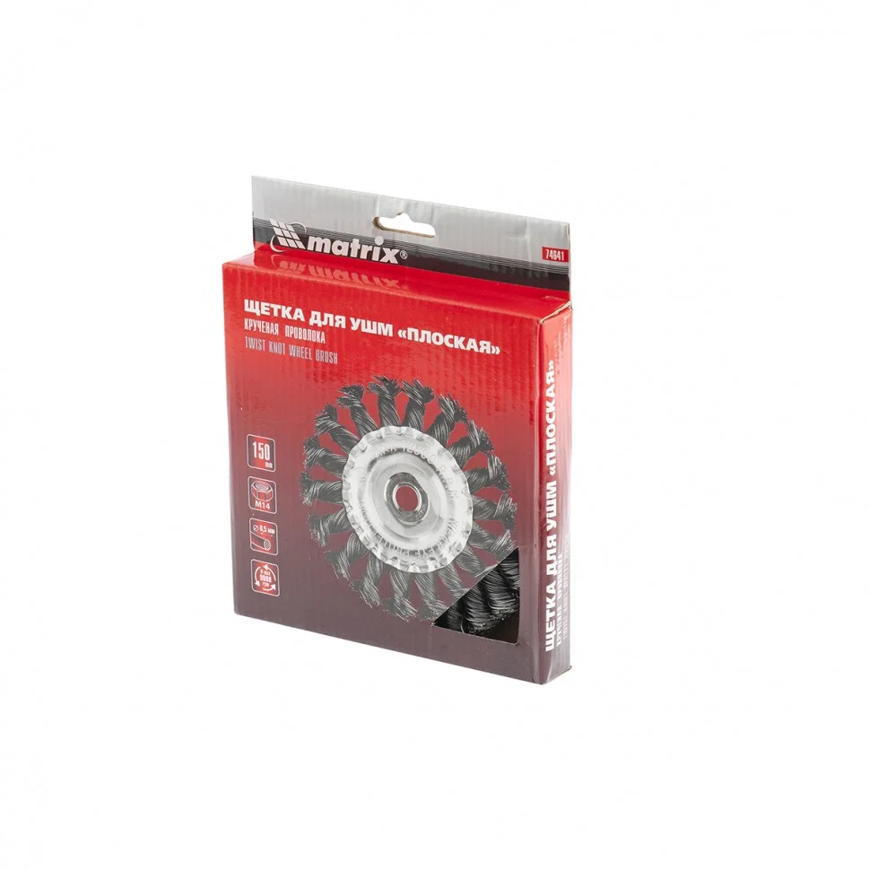 Плоская щетка для УШМ Matrix 74641 диаметром 150 мм, с крученой проволокой 0,5 мм и гайкой М14 используется для грубой (черновой) обработки поверхностей. Она устанавливается в качестве оснастки на УШМ. Благодаря щетке можно снять толстый слой ржавчины, лакокрасочных покрытий, загрязнений, а также зачистить сварные швы. За счет плоской формы ею удобно проводить обработку в труднодоступных местах: углах, изгибах и др. Эксплуатация щетки допускается на скорости не более 9000 об/мин.ПреимуществаЩетина из прочной стальной проволоки обеспечивает высокий ресурс щетки.Щетка универсальна и может использоваться для обработки различных поверхностей: металлических, в т.ч. из цветных металлов, деревянных, пластиковых.Щетина обработана маслом, а корпус покрыт цинком для повышения антикоррозионных свойств щетки.