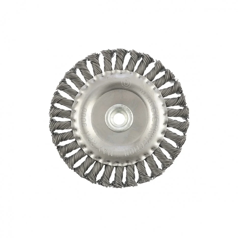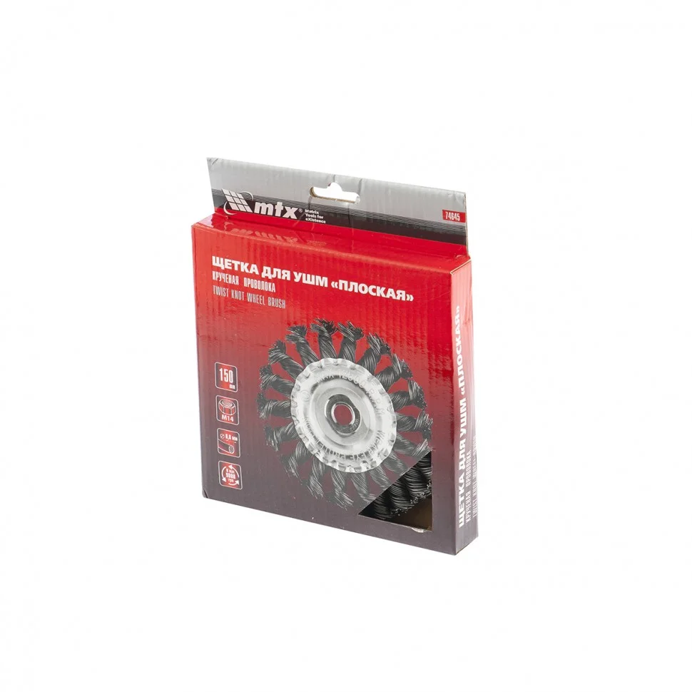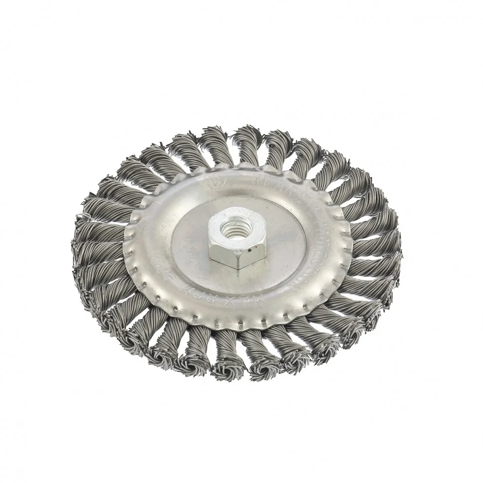 Плоская щетка для УШМ Matrix 74645 диаметром 150 мм, с крученой проволокой 0,8 мм и гайкой М14 используется для грубой (черновой) обработки поверхностей. Она устанавливается в качестве оснастки на УШМ. Благодаря щетке можно снять толстый слой ржавчины, лакокрасочных покрытий, загрязнений, а также зачистить сварные швы. За счет плоской формы ею удобно проводить обработку в труднодоступных местах: углах, изгибах и др. Эксплуатация щетки допускается на скорости не более 9000 об/мин.ПреимуществаЩетина из прочной стальной проволоки обеспечивает высокий ресурс щетки.Щетка универсальна и может использоваться для обработки различных поверхностей: металлических, в т.ч. из цветных металлов, деревянных, пластиковых.Щетина обработана маслом, а корпус покрыт цинком для повышения антикоррозионных свойств щетки.