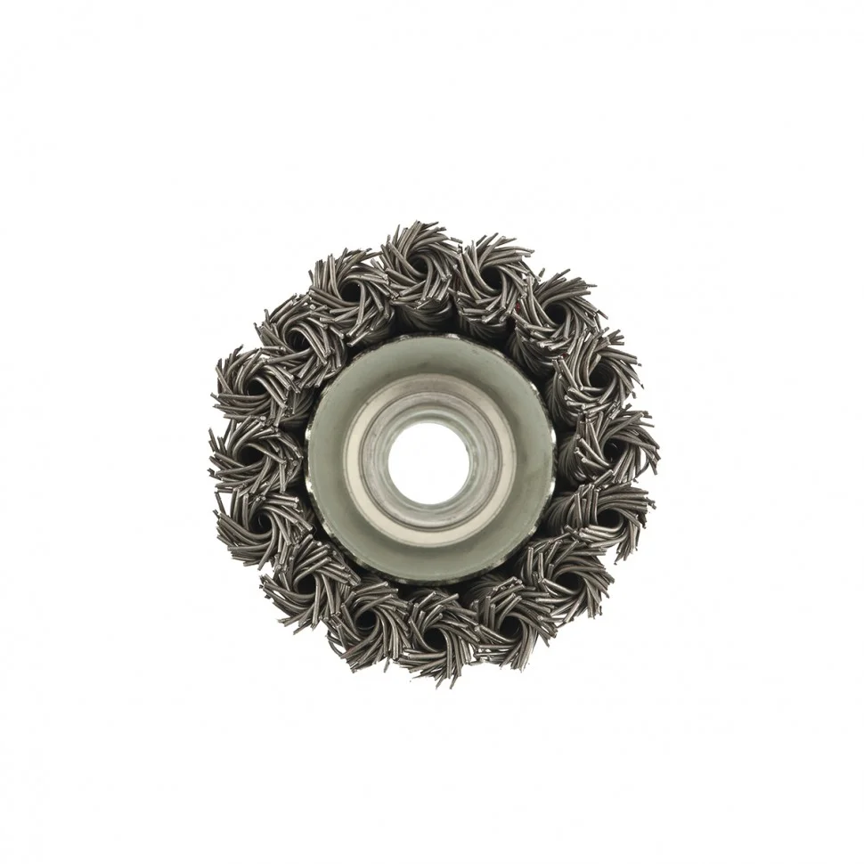 Щетка Matrix «Чашка» 74621 диаметром 65 мм, М14, с крученой проволокой 0,8 мм, применяется в качестве оснастки на УШМ. Щетина рассчитана на грубую (черновую) обработку поверхностей, более агрессивную в сравнении с щетиной 0,5 мм. Изделие подходит для удаления загрязнений, снятия толстого слоя ржавчины, ЛКМ, зачистки сварных швов. Рекомендуемая скорость использования — 12500 об/мин.ПреимуществаБлагодаря высококачественной проволоке оснастка прослужит долгое время.Благодаря форме «чашка» насадка имеет большую площадь прилегания, поэтому оптимально подходит для обработки больших поверхностей.Щетку универсального назначения можно использовать для обработки любых твердых материалов: металла, древесины, цветных металлов, пластика и др.Корпус покрыт эмалью, а щетина — маслом, за счет чего щетка устойчива к коррозии.