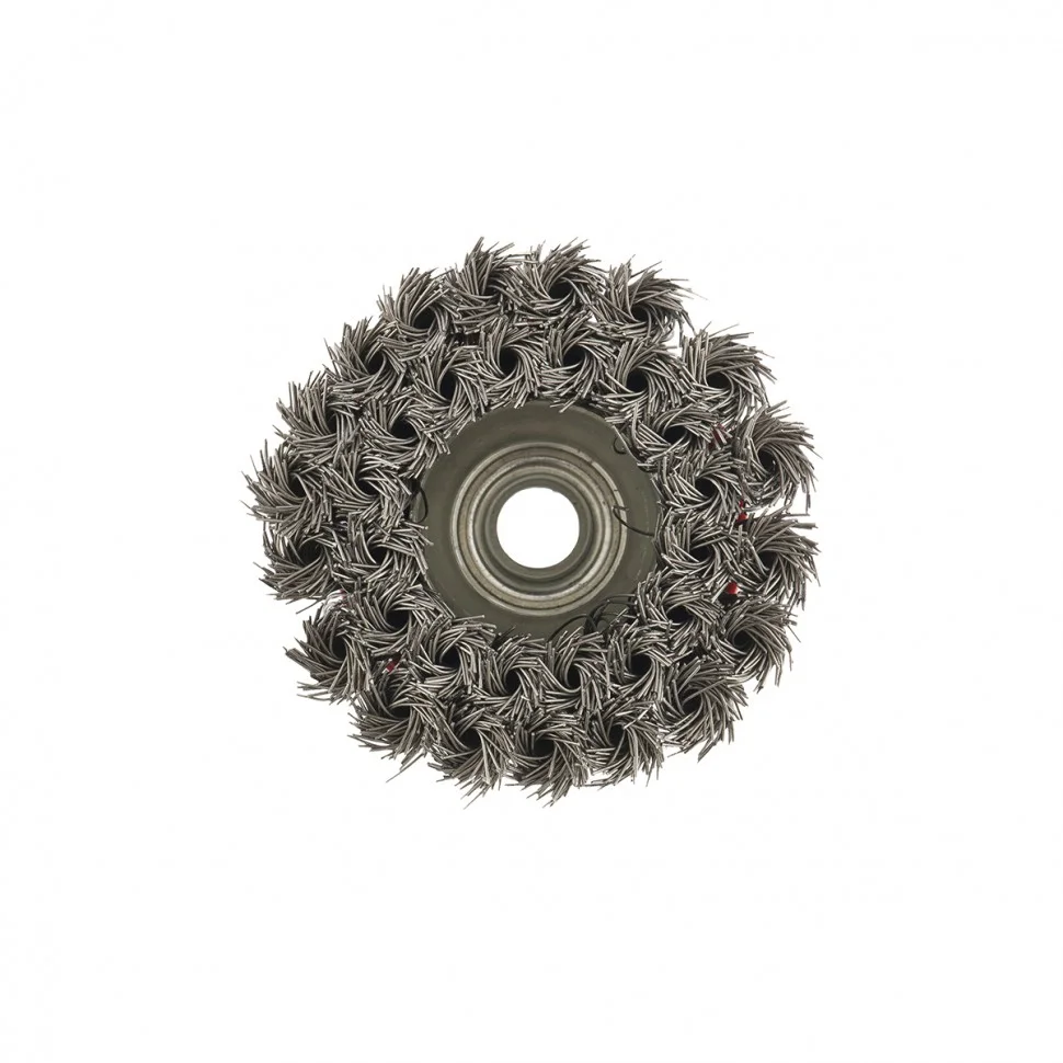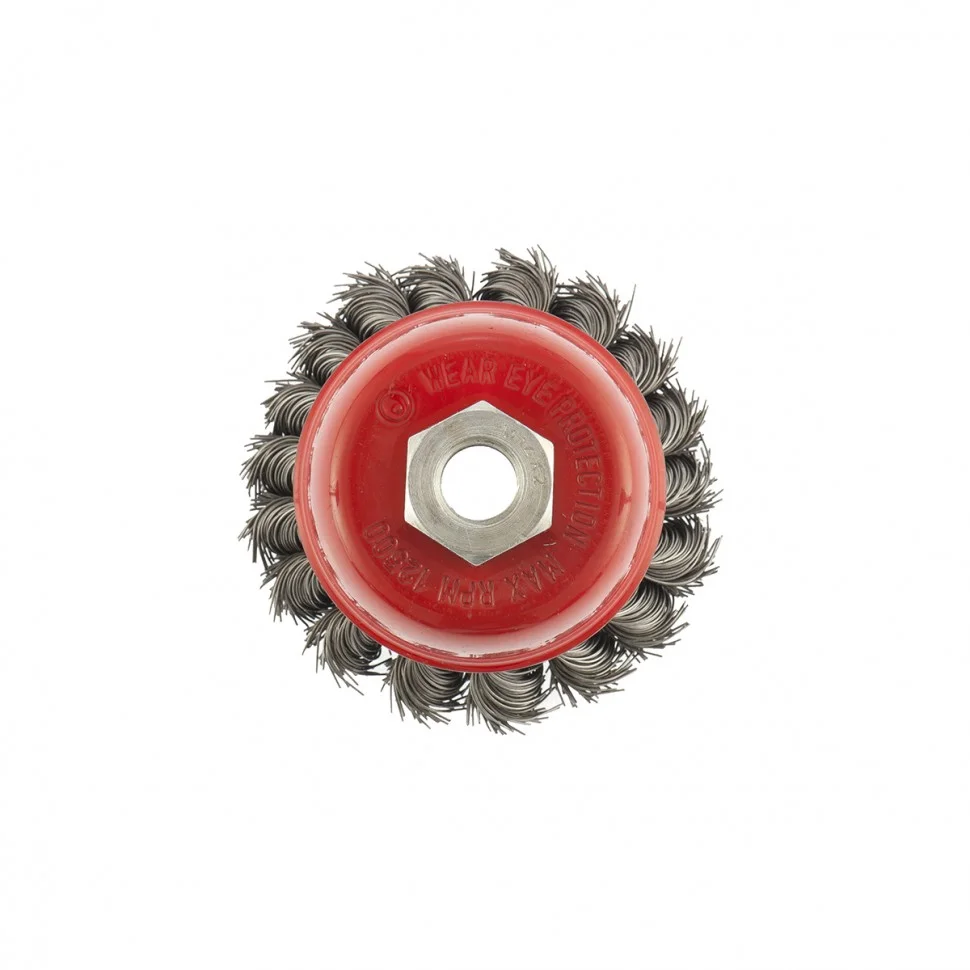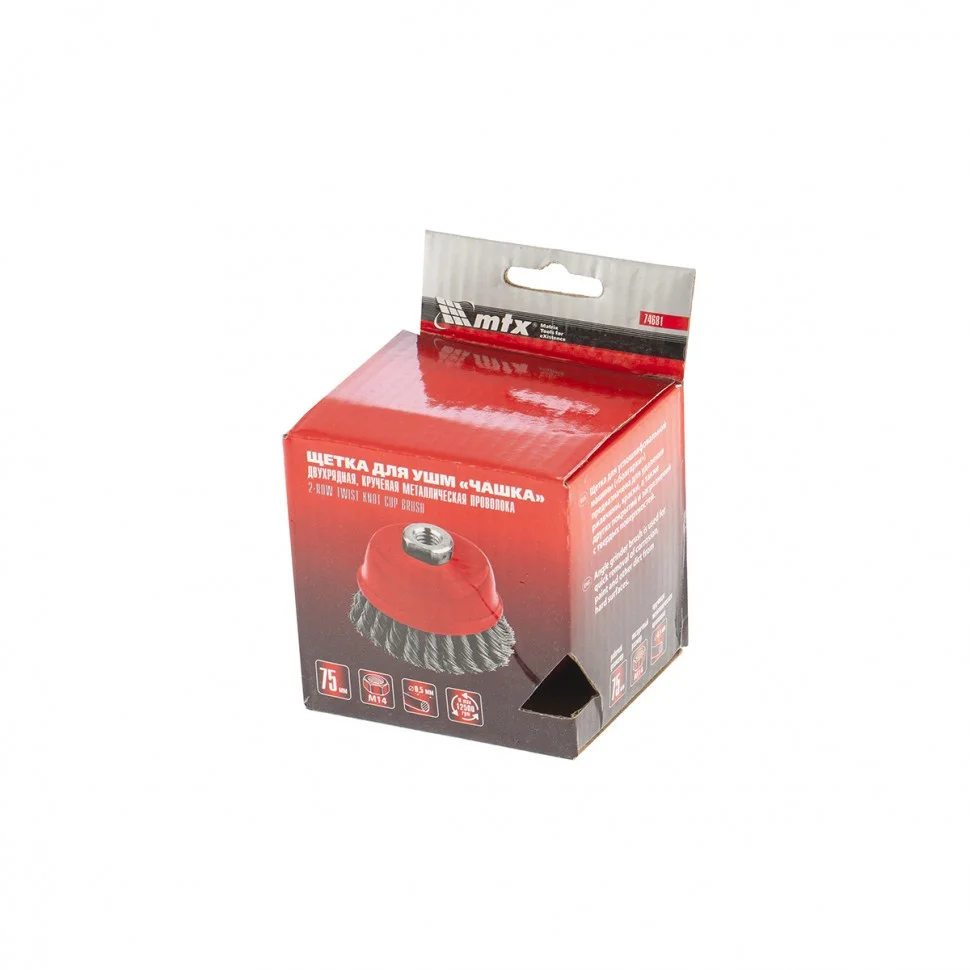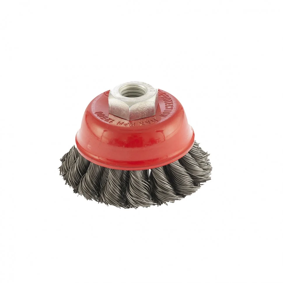 Двухрядная щетка Matrix «Чашка» 74681 диаметром 75 мм, с крученой проволокой 0,5 мм, устанавливается на вал углошлифовальной машины с помощью гайки М14. Оптимально подходит для грубой (черновой) обработки: снятия старого слоя ЛКП, ржавчины и удаления загрязнений, зачистки сварных швов. За счет двух рядов проволоки щетка справляется с зачисткой больших поверхностей и работой повышенной сложности. Рекомендованная максимальная скорость работы — до 12500 об/мин.ПреимуществаСтальная крученая проволока — оснастка отличается прочностью и долговечностью.Универсальное применение — щеткой можно обрабатывать любые твердые материалы: металл, древесину, цветные металлы, пластик и т.д.Высокая производительность — двухрядная щетка за один проход снимает большое количество материала, не снижая качество работы.Защита от коррозии — корпус оцинкован, щетина покрыта техническим маслом.