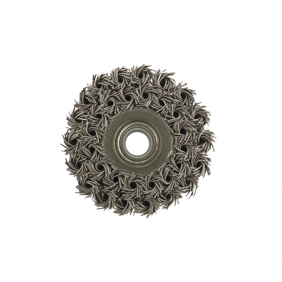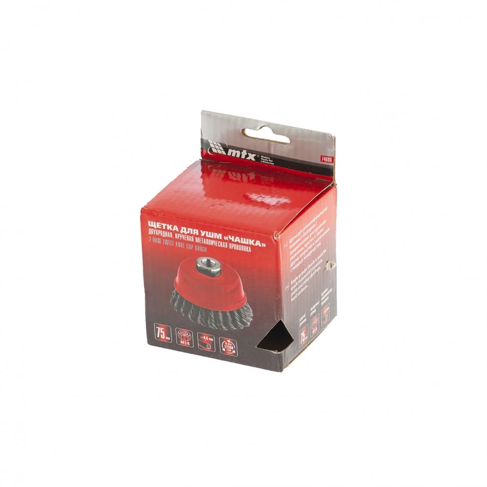 Двухрядная щетка Matrix «Чашка» 74686 диаметром 75 мм, с крученой проволокой 0,8 мм, устанавливается на вал углошлифовальной машины с помощью гайки М14. Оптимально подходит для грубой (черновой) обработки: снятия старого слоя ЛКП, ржавчины и удаления загрязнений, зачистки сварных швов. За счет двух рядов проволоки щетка справляется с зачисткой больших поверхностей и работой повышенной сложности. Рекомендованная максимальная скорость работы — до 12500 об/мин.ПреимуществаСтальная крученая проволока — оснастка отличается прочностью и долговечностью.Универсальное применение — щеткой можно обрабатывать любые твердые материалы: металл, древесину, цветные металлы, пластик и т.д.Высокая производительность — двухрядная щетка за один проход снимает большое количество материала, не снижая качество работы.Толщина щетины 0,8 мм — щетка очищает поверхности более агрессивно, чем изделия с щетиной 0,5 мм.Защита от коррозии — корпус оцинкован, щетина покрыта техническим маслом.