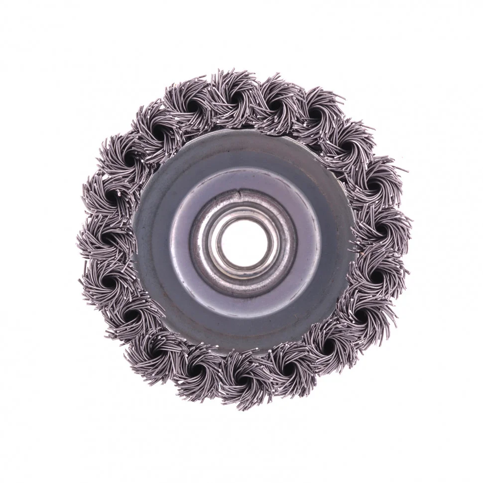 Щетка для УШМ «Чашка» Matrix Heavy Duty 74670 диаметром 80 мм, посадкой М14, с щетиной из крученой проволоки толщиной 0,5 мм, используется для грубой (черновой) обработки поверхностей. Устанавливается на УШМ, поддерживающую скорость вращения до 8500 об/мин. Усиленный корпус с дополнительным стягивающим кольцом отличается повышенной стойкостью к нагрузкам. Оснастка применяется для снятия толстого слоя ржавчины и лакокрасочных покрытий, зачистки сварных швов, удаления загрязнений.ПреимуществаЭффективная работа — щетка в форме чашки оптимальна для обработки больших плоских поверхностей.Универсальность — щеткой можно обрабатывать черные и цветные металлы, древесину, пластик и другие твердые материалы.Высокий ресурс — щетина из высококачественной стальной проволоки выдерживает интенсивное использование.Коррозионная стойкость — корпус оцинкован, щетина покрыта техническим маслом.