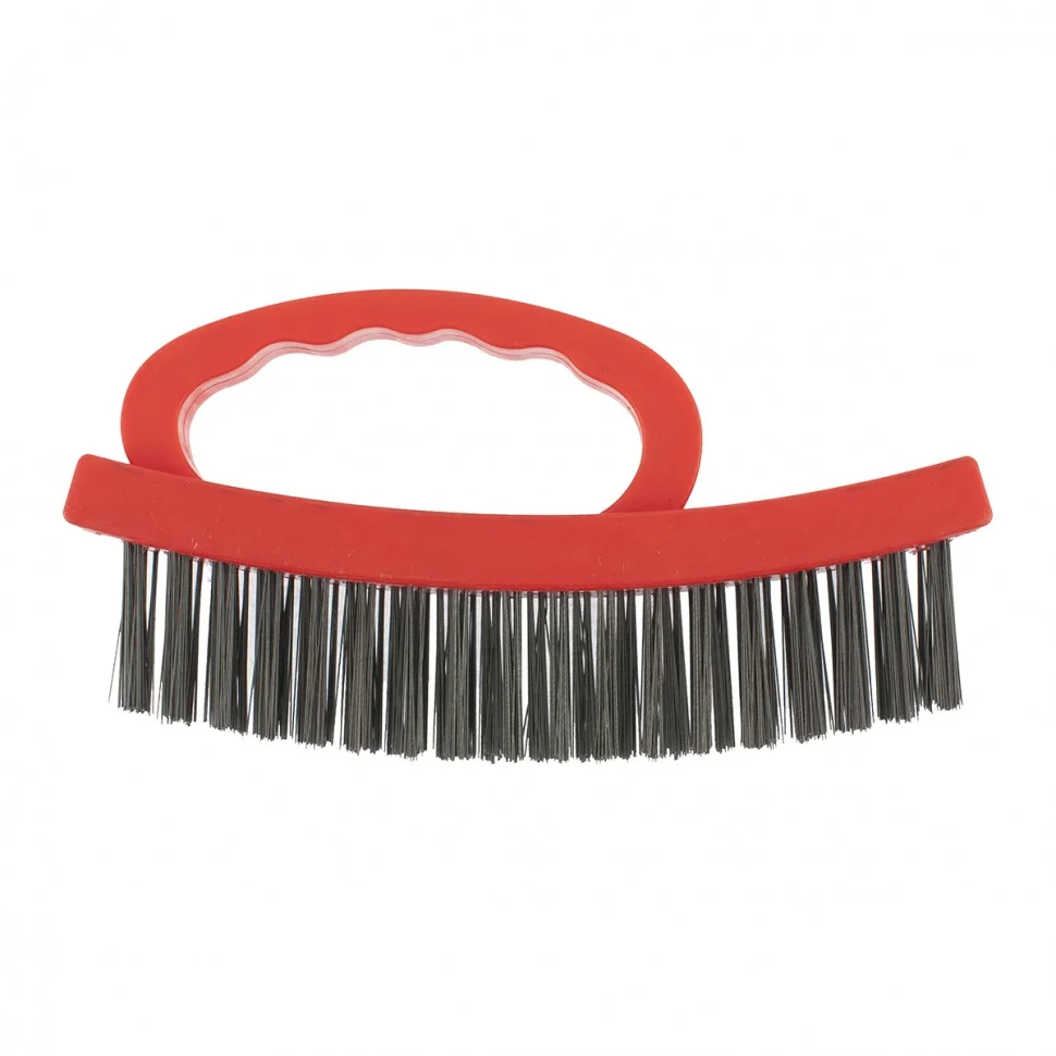 Плоская зачистная 4-рядная щетка Matrix 74818, пластиковая, с рукояткой, — ручной инструмент для очистки поверхностей от старых лакокрасочных покрытий, загрязнений, ржавчины. Подходит для обработки металла, древесины, пластика и других материалов. Плотные пучки расположены в 4 ряда, что обеспечивает высокую эффективность воздействия. У щетки имеется эргономичная рукоятка с подпальцевыми выемками, что повышает комфортность работы. Щетка пригодится во время строительства и ремонта, а также будет полезна дома, на даче или в гараже.ПреимуществаИзносостойкость — щетина изготовлена из закаленной высокоуглеродистой стали.Устойчивость к коррозии — проволока покрыта масляной пленкой.Надежность — пучки крепко зафиксированы в основании, поэтому проволока не разлетается во время работы.Долговечность — рукоятка выполнена из прочного, не рассыхающегося пластика.