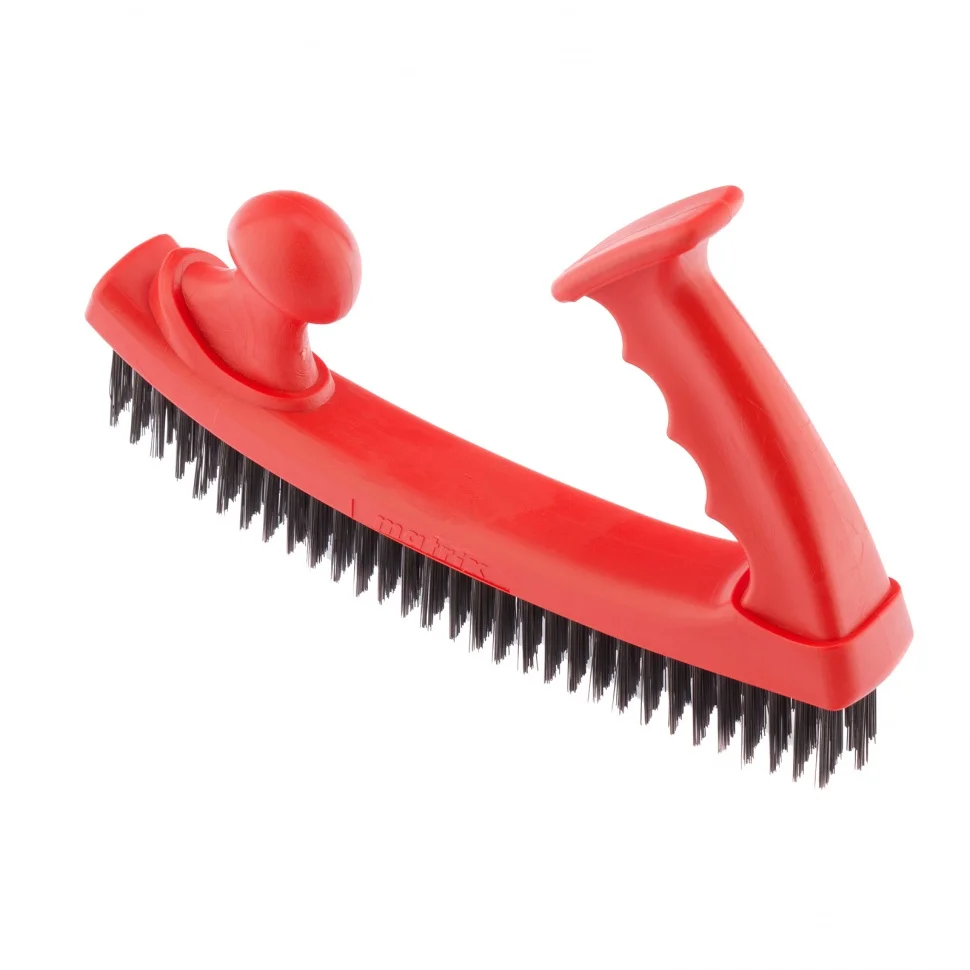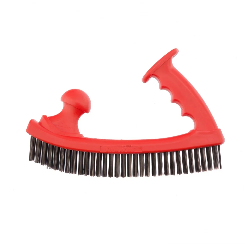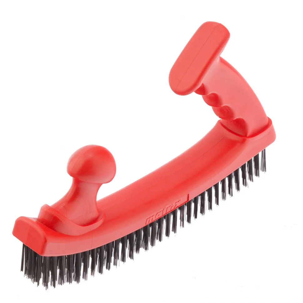Двуручная пластиковая зачистная щетка Matrix 74830 эффективно очищает металлические, деревянные и другие поверхности от въевшихся загрязнений, ржавчины, старых лакокрасочных покрытий. 5-рядная щетина обеспечивает высокую скорость обработки. Двуручная конструкция позволяет проводить зачистку со значительным усилием. Щетка пригодится строителям, ремонтникам, автослесарям, а также будет полезна в быту.ПреимуществаЩетина изготовлена из прочной стальной проволоки и устойчива к деформациям при высоких нагрузках.Проволока надежно закреплена в основании и не выпадает во время работы.Прочный пластиковый корпус не подвержен коррозии и рассыханию, поэтому щетка прослужит долго.Эргономичные рукоятки обеспечивают надежный хват, что повышает комфорт во время работы.