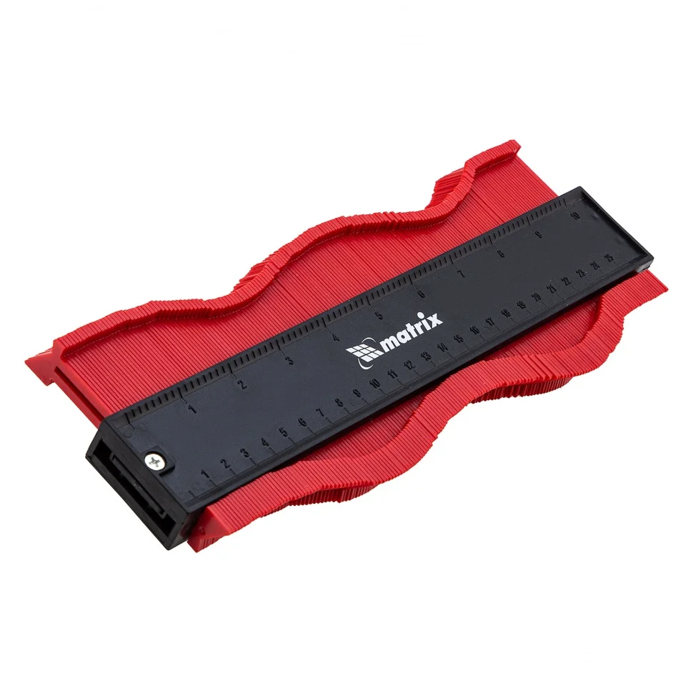 Пластиковый шаблон для копирования профиля Matrix 88104 предназначен для копирования и переноса контуров различных форм. Шаблон необходим для точной подрезки отделочных материалов (ламинат, линолеум, кафельная плитка, гипсокартон и др.) при обходе труб водоснабжения, углов и других рельефных препятствий. Перенос контуров осуществляется при помощи выдвижных пластиковых пластин. Шаблон оснащен измерительной шкалой длиной 25 см.