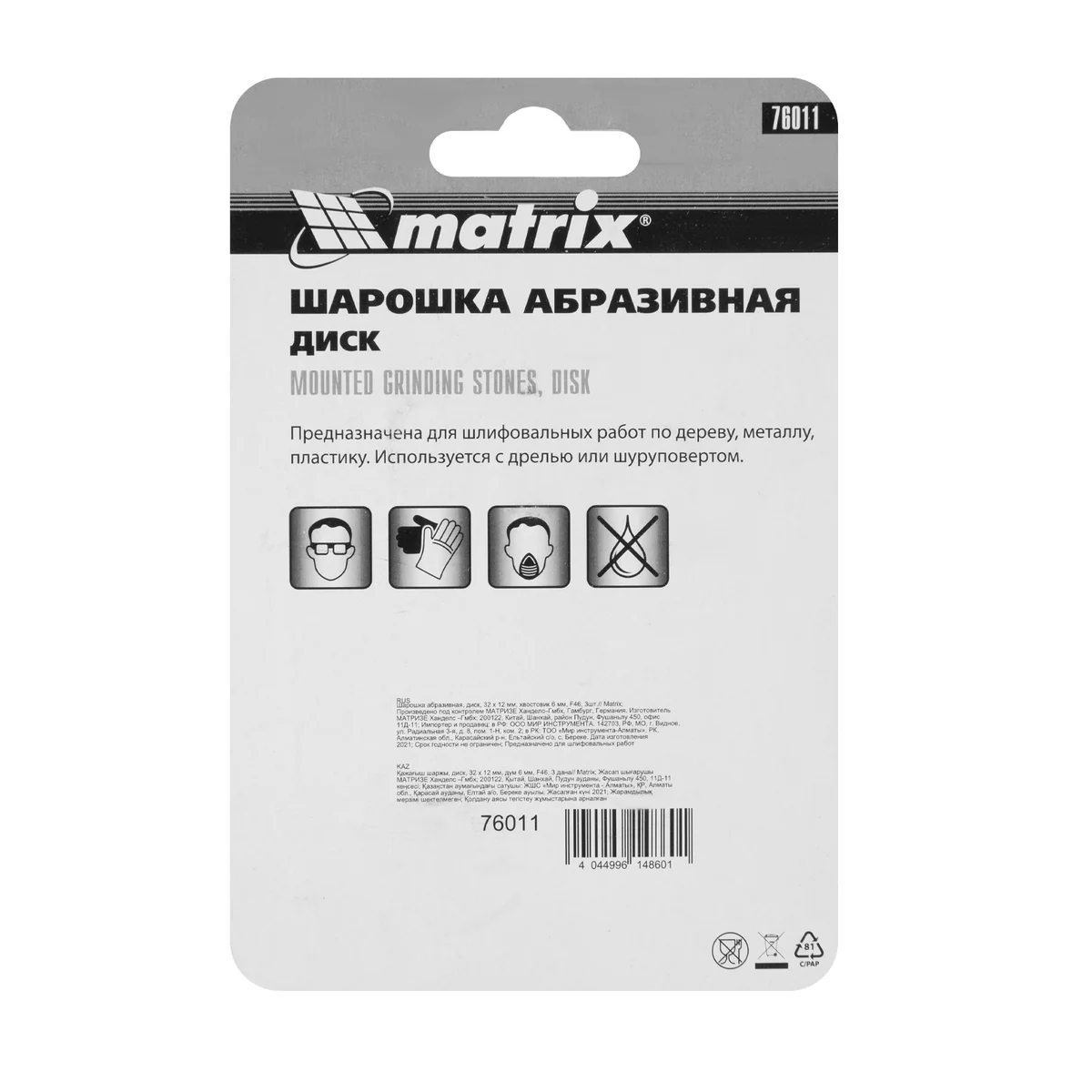 Шарошка абразивная Matrix 76011, 32 х 12 мм, с абразивом F46 и диаметром хвостовика 6 мм — набор из 3 дисков, рассчитанный на бытовое и профессиональное применение. Используется в качестве оснастки на дрелях, шуруповертах, а также ПШМ, позволяет снимать фаски, удалять заусенцы и производить другие работы на различных поверхностях. Дисковые шарошки пригодятся при осуществлении отделочных и декоративных работ.ПреимуществаАбразив из оксида алюминия — шарошка подходит для обработки различных материалов: металла, пластика, древесины, природного и искусственного камня.Крупнозернистый абразив F46 — с помощью шарошки можно произвести грубую шлифовку заготовок.3 шарошки в комплекте — их хватит на большой объем работ.