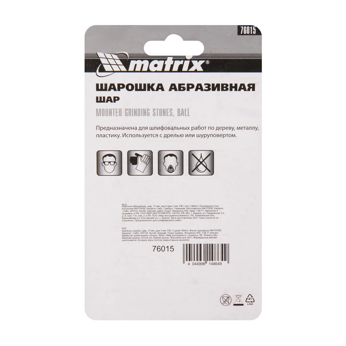 Шарошка абразивная Matrix 76015 зернистостью F80 выполнена в форме шара диаметром 10 мм с хвостовиком диаметром 3 мм. Используется в качестве оснастки на дрелях и шуруповертах, а также ПШМ при проведении столярных, ремонтных, строительных работ. Благодаря головке в форме шара шарошка может снять фаску и заусенцы, зачистить детали со сложной формой.ПреимуществаАбразивные зерна из оксида алюминия делают шарошку универсальной: она справляется с обработкой металлических, деревянных, пластиковых и каменных поверхностей.Благодаря среднему размеру абразива F80 шарошка оптимальна для чистовой шлифовки заготовок.В комплект входят 3 шарошки для большого объема работ.