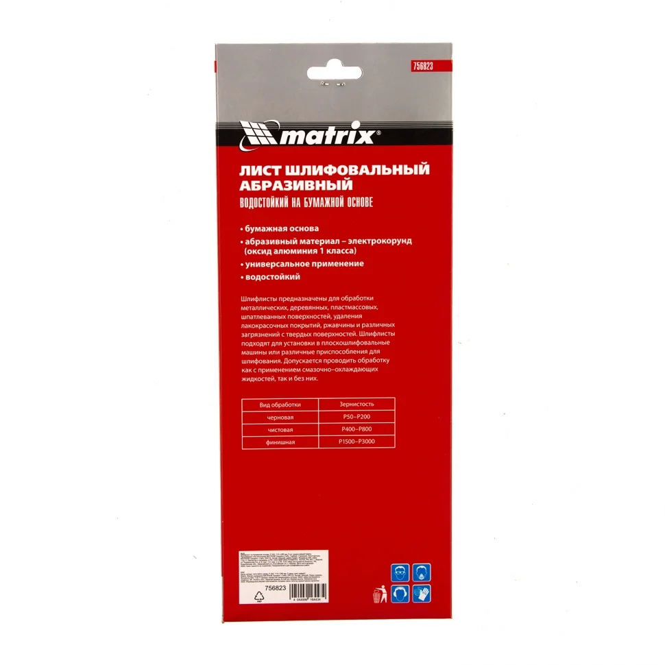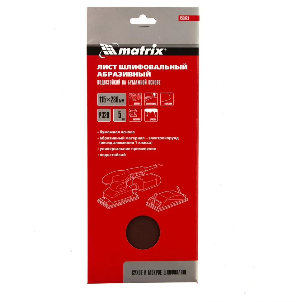 Шлифлист Matrix 756823 размером 115 х 280 мм оптимален для чистовой обработки. Устанавливается в плоскошлифовальную машину, а также различные шлифовальные приспособления, либо применяться для ручной обработки. Мелкозернистый электрокорунд P320 оптимален для удаления тонкого слоя материала.ПреимуществаУниверсальность — шлифлист предназначен для обработки различных поверхностей: деревянных, металлических, пластмассовых, шпаклеванных, в том числе подготовленных под отделку и покраску.Абразив из оксида алюминия 1-го класса — твердые крупицы заостренной формы обеспечивают высокую скорость обработки.Возможность обработки неровных поверхностей — бумажная основа в сочетании с тонкой структурой листа обеспечивают высокую чувствительность к рельефу поверхности.Водостойкость — шлифлист может использоваться для сухой и мокрой обработки поверхностей.Удобная упаковка — набор состоит из 5 штук.