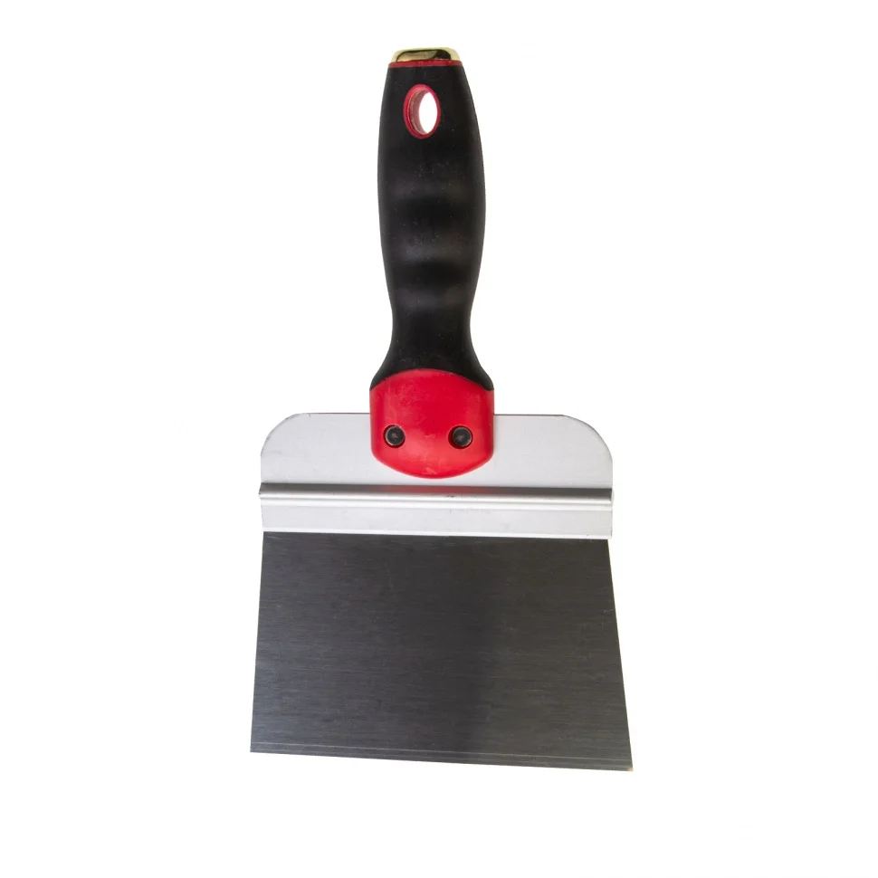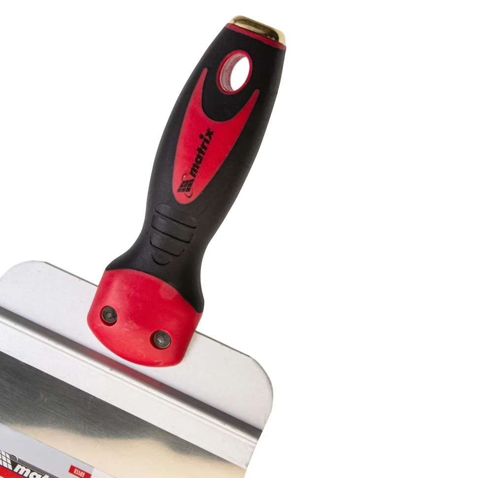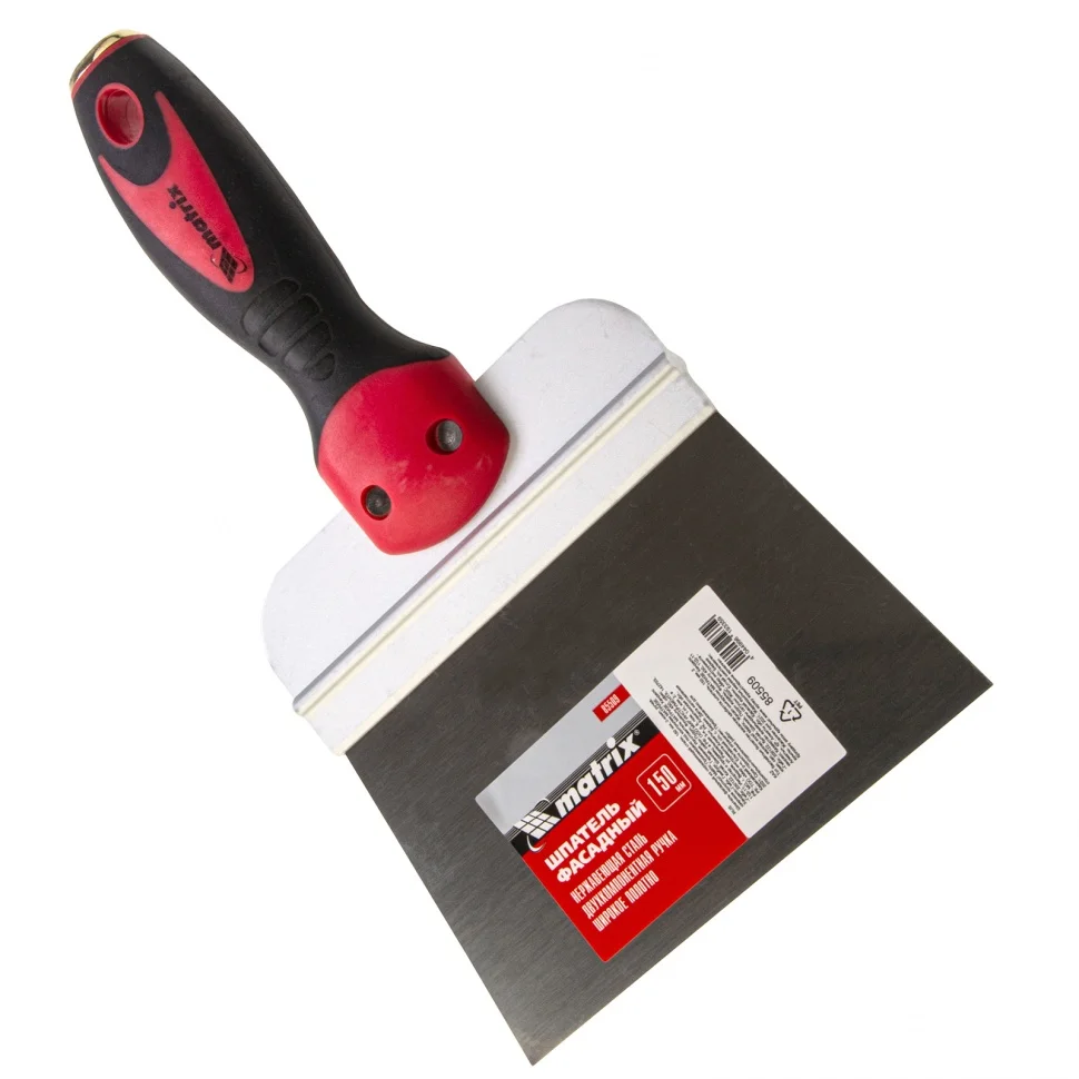 Фасадный шпатель Matrix 85509 из нержавеющей стали, с широким полотном 150 мм и 2-компонентной ручкой, используется для нанесения и выравнивания поверхностей с помощью растворов, нанесения декоративных штукатурок и т.д. Позволяет решить как бытовые, так и профессиональные задачи на строительной площадке.ПреимуществаРабочее полотно из высококачественной нержавеющей стали устойчиво к износу и образованию коррозии, а также легко очищается после окончания работ.Алюминиевое ребро жесткости повышает устойчивость рабочего полотна к деформации и рабочий ресурс инструмента.За счет ширины полотна 15 см удобно набирать большое количество смеси.Эргономичная двухкомпонентная рукоятка обеспечивает удобный захват шпателя и предотвращает его проскальзывание в ладони.В рукоятке имеется отверстие для организации подвесного хранения.