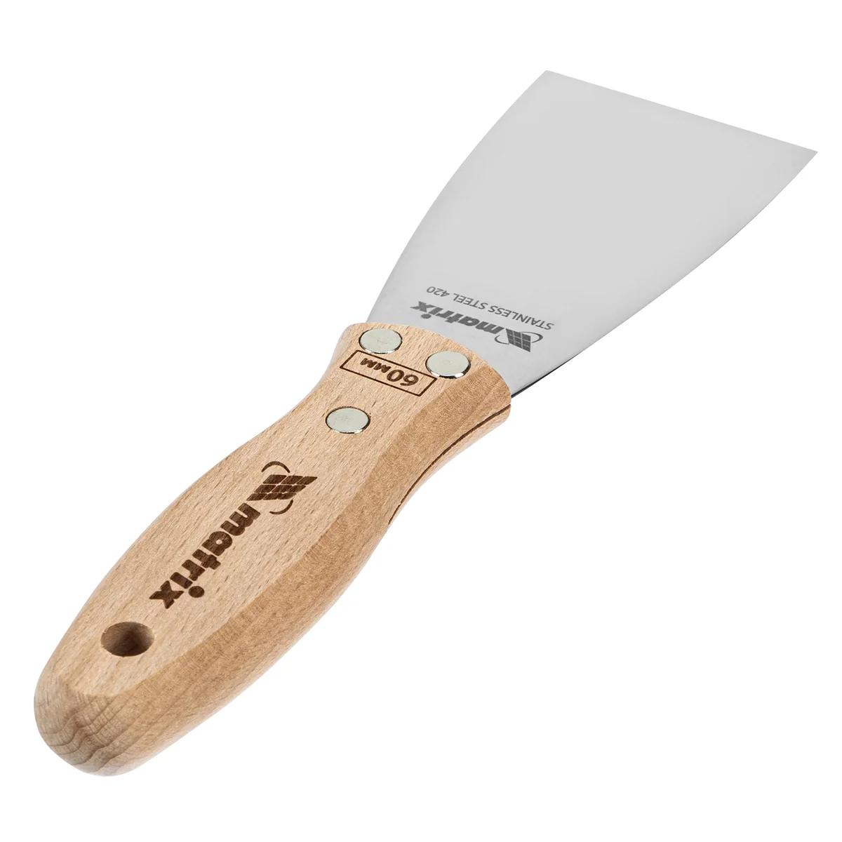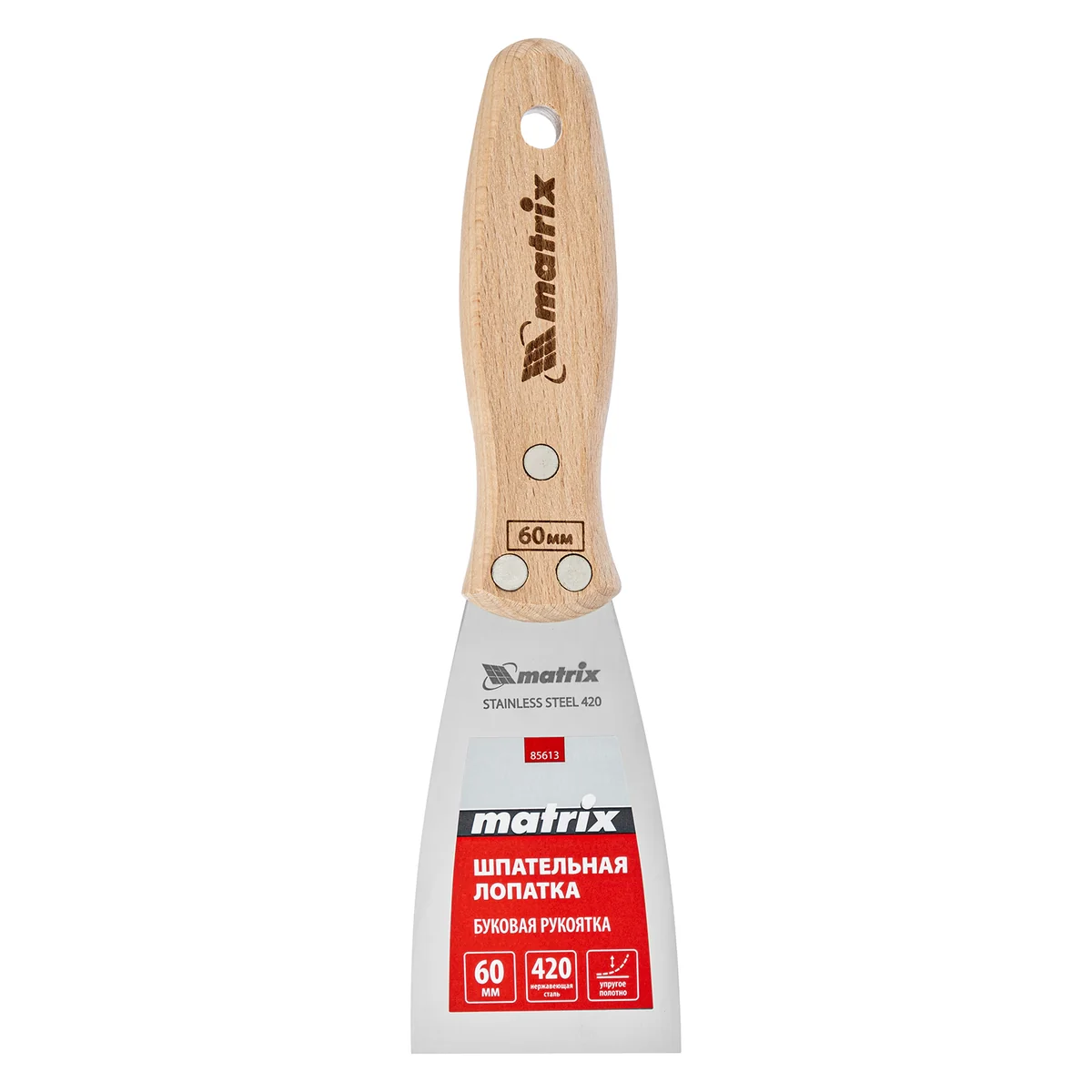 Шпательная лопатка Matrix 85613 с полотном из нержавеющей стали шириной 60 мм и буковой рукояткой предназначена для работы со строительными растворами. Применяется для нанесения различных смесей на поверхности, шпатлевания трещин и неровностей.