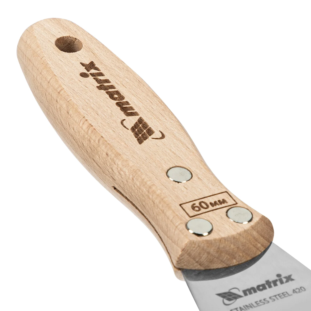 - Удобное хранение — в рукоятке предусмотрено отверстие для подвешивания шпательной лопатки.