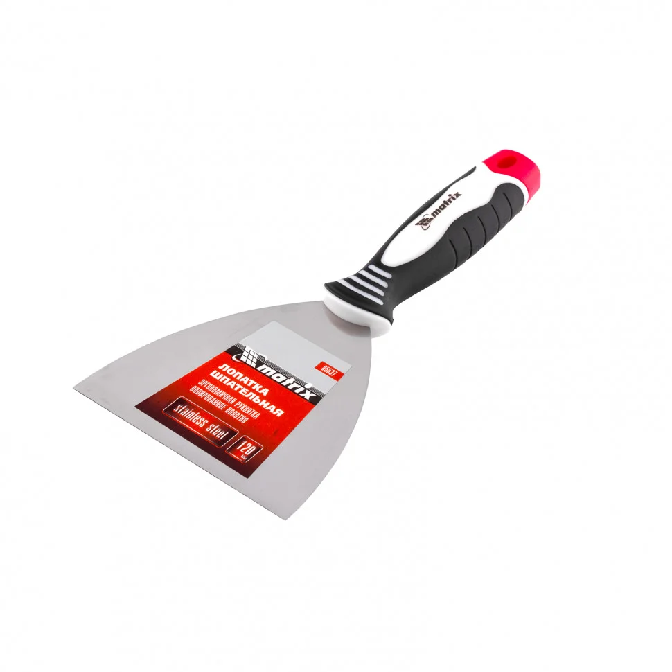 Шпательная лопатка Matrix 85537 из нержавеющей стали, с полотном шириной 120 мм и 3-компонентной ручкой, подходит для бытового и профессионального применения. Инструмент позволяет замешивать, наносить и разравнивать штукатурку и другие строительные растворы, заполнять швы, заделывать трещины и выполнять иные отделочные работы.ПреимуществаПовышенная упругость и износостойкость — рабочая часть изготовлена из профилированной нержавеющей стали по новейшим технологиям.Эффективная работа — за счет зеркальной полировки с полотна легко удаляются остатки смеси.Гибкость и прочность — рабочее полотно прошло термическую обработку для повышения эксплуатационных качеств.Эргономичность — рукоятка анатомической формы имеет нескользящее покрытие для удобного захвата и комфортной работы.Ширина 12 см — небольшая лопатка оптимально подходит для исправления мелких неровностей и трещин.Долговечность — рабочее полотно прочно соединено с рукояткой.Удобное подвесное хранение — в рукоятке предусмотрено отверстие.