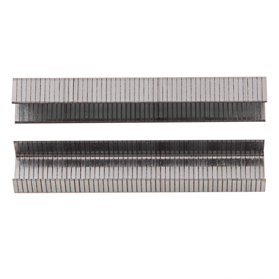 Скобы Matrix 57654 типа 20GA, 5000 шт. в упаковке, загружаются в скобоприемник пневматического степлера, совместимого с крепежами размером 8 х 1,2 х 0,6 мм и шириной 11,2 мм. Подходят для крепления вагонки и сайдинга, упаковки товаров, перетяжки мебели, фиксации плинтусов и молдингов на деревянных поверхностях.ПреимуществаПрочность и коррозионная стойкость — скобы изготовлены из стали твердостью 310 HV и имеют предел прочности при растяжении 1100 Н/мм, а никелевое покрытие защищает их от воздействия влаги.Эффективная работа — скобы с заостренными концами легко пробивают даже твердые материалы.Продуманная комплектация — крепежи, склеенные в блоки, не рассыпаются, а упаковки из 5000 шт. хватит надолго.