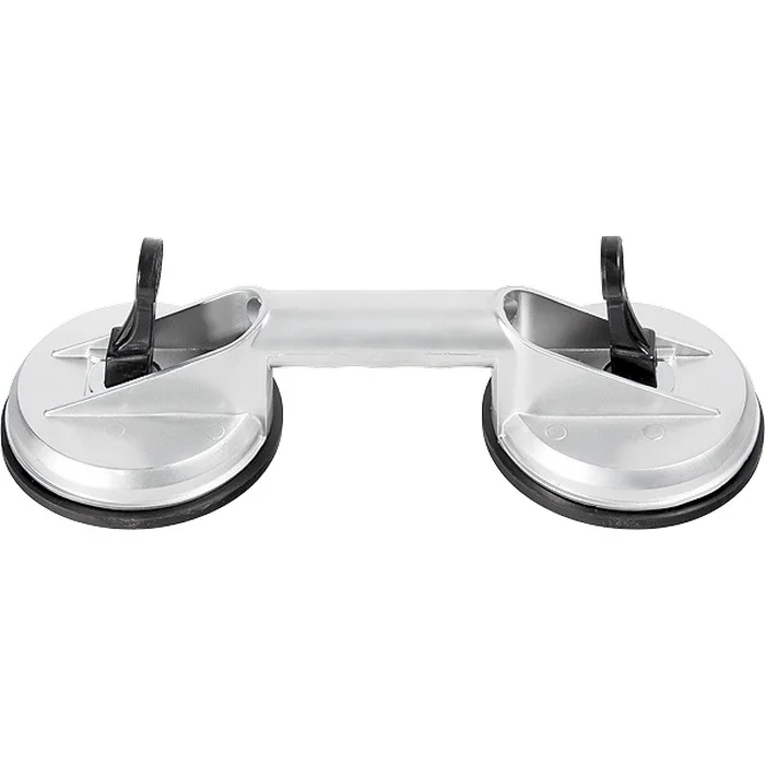 Алюминиевый двойной стеклодомкрат Matrix 875205 используется для подъема, удержания и перемещения гладких пластин и листовых материалов — стекол, зеркал, кафельной плитки, металла, пластика. Имеет две вакуумные присоски, которые бережно и надежно фиксируются на поверхности при помощи зажимов. Такая конструкция позволяет поднимать и долгое время удерживать стеклодомкратом материалы весом до 80 кг. Изделие пригодится мастерам по ремонту, а также будет полезно в быту.