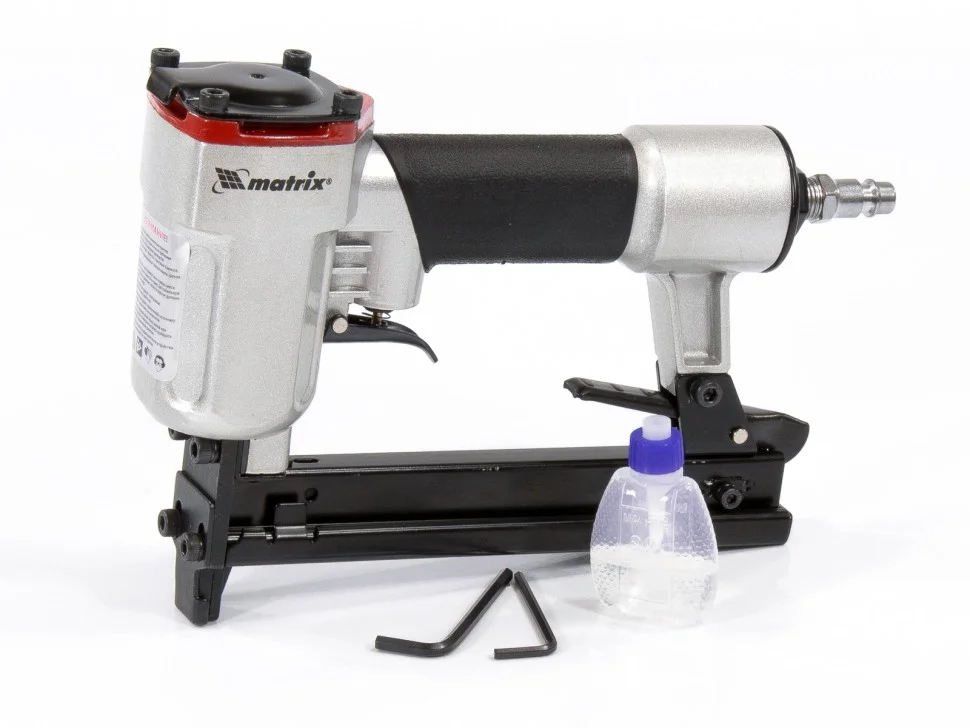 Пневматический степлер Matrix 57420 используется с прямоугольными скобами 20GA длиной от 10 до 22 мм. Его применяют для сборки деревянных каркасов и мебели, ремонта кровли, утепления домов, монтажа окон и дверей, строительства бытовок.ПреимуществаВместительный магазин — одной обоймы на 100 скоб хватит для выполнения большого объема работ.Продуманная конструкция — благодаря быстрому доступу к магазину зарядить степлер можно за несколько секунд.Прочность и долговечность — корпус изготовлен из алюминия, поэтому инструмент прослужит долго.Удобная работа — степлер весит всего 1,25 кг, а обрезиненная рукоятка обеспечивает удобный хват.Подтвержденное качество — гарантия на заводской брак действует 3 года.