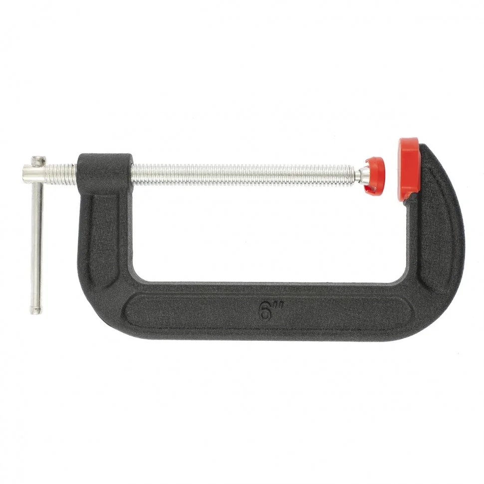 G-бразная струбцина Matrix 20604 с максимальной шириной зажима 100 мм используется для фиксации заготовок или закрепления их на верстаке или станке. Позволяет склеивать детали, а также сверлить их, шлифовать, опиливать и проводить другие работы. Подходит для использования при сварке. Рама изготовлена из высокопрочного чугуна, поэтому выдерживает значительные усилия. Винт с трапециевидной резьбой обеспечивает надежную фиксацию предметов. Струбцина применяется в слесарном и столярном деле, а также в домашнем хозяйстве.ПреимуществаВинт изготовлен из стали, что повышает устойчивость конструкции к нагрузкам.Покрытие из порошковой краски препятствует образованию коррозии на раме и обеспечивает ее стойкость к механическим повреждениям.Пластиковые накладки на губках защищают обрабатываемые детали от появления дефектов на поверхности (перед сварочными работами накладки необходимо снять).Для вращения винта предусмотрен вороток, что экономит силы мастера при затягивании зажима.