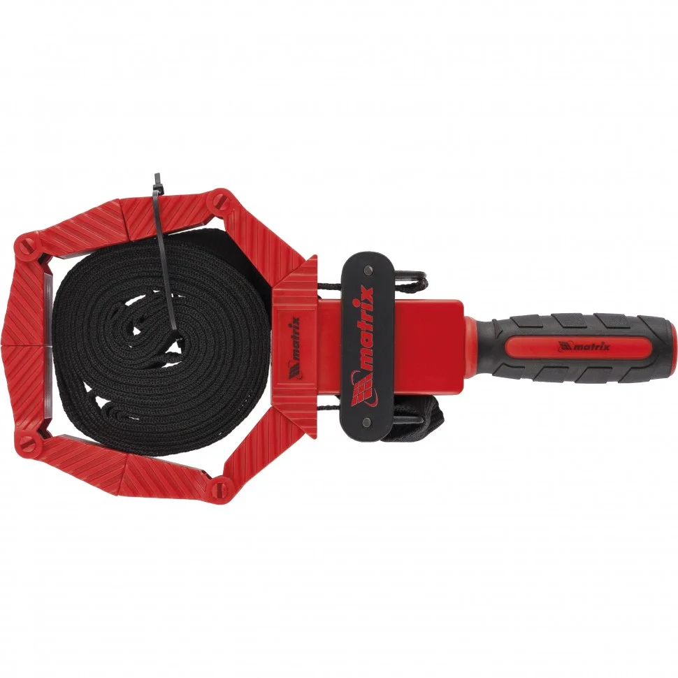 Ленточная струбцина Matrix «Багет» 20325, 4000 мм, используется для временной фиксации деталей сложных форм, например, круглых или многоугольных. Будет полезна в столярной мастерской и в быту.ПреимуществаКорпус изготовлен из ударопрочного пластика, что обеспечивает инструменту устойчивость к механическим повреждениям.Лента выполнена из высокопрочного нейлона и выдерживает значительные нагрузки при стягивании деталей.Двухкомпонентная рукоятка с рельефным дизайном удобно лежит в руке, обеспечивая комфорт во время работы.