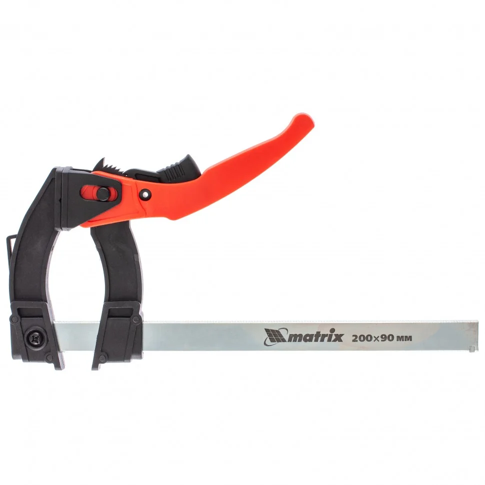 Струбцина реечная быстрозажимная, пластиковый корпус рычажно-храповой механизм, 200 х 90 х 290 мм, штанга 5 х 20 мм Matrix 20736