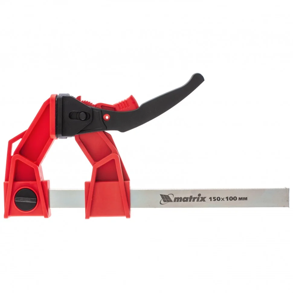 Струбцина реечная быстрозажимная, усиленная, пластиковый корпус рычажно-храповой механизм, 150 х 100 х 306 мм, штанга 5 х 22 мм Matrix 20725