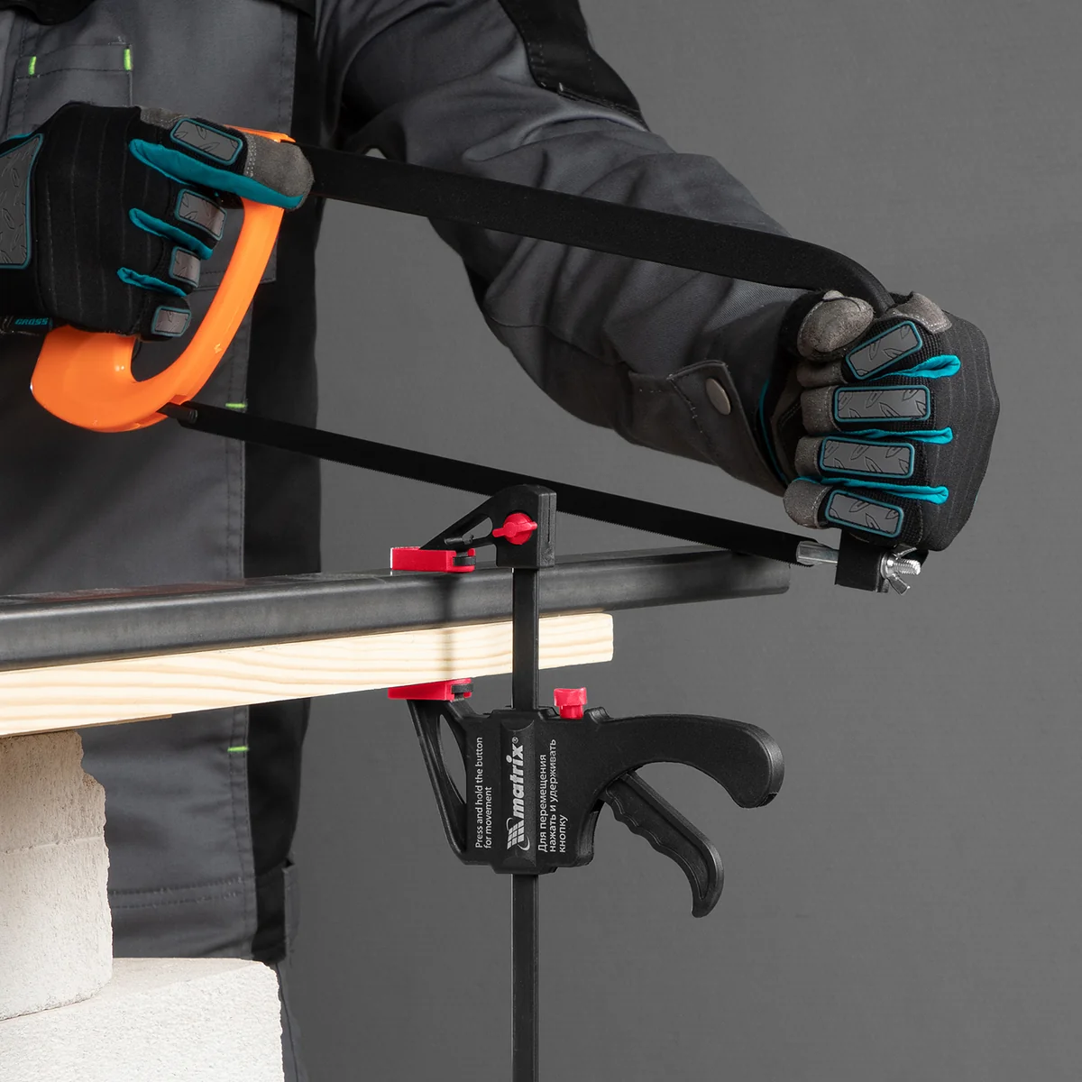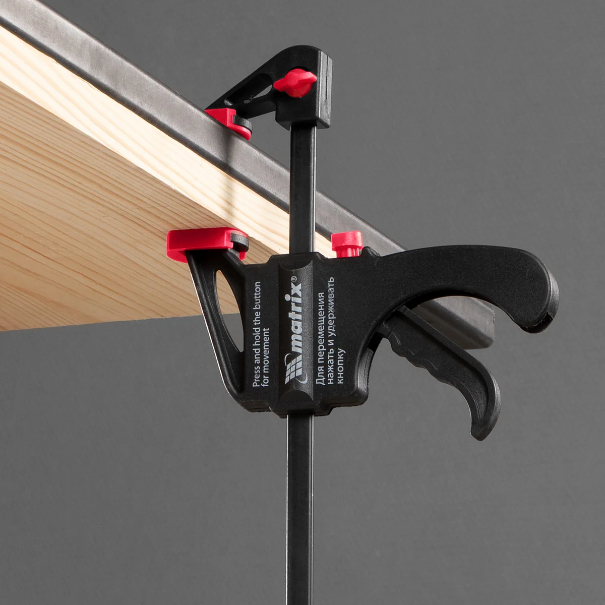 Универсальная F-образная быстрозажимная струбцина Matrix 20562, 200 х 315 х 45 мм, в пластиковом корпусе, используется в столярном деле. Позволяет быстро фиксировать заготовки с целью их соединения или обработки — склеивания, сверления, шлифовки, пиления и других видов работ. Подвижная губка перемещается вдоль штанги при помощи пластинчатого механизма, а фиксатор препятствует разжиманию струбцины. Компактный размер упрощает работу с инструментом.ПреимуществаНаправляющая изготовлена из стали и устойчива к нагрузкам, поэтому выдерживает значительные усилия при сжатии предметов.Рабочие элементы выполнены из ударопрочного пластика и обладают высокой механической стойкостью, что увеличивает срок службы инструмента.Защитные накладки на губках предохраняют зажимаемые детали от повреждений.Опорную губку можно установить на противоположный конец штанги, после чего использовать струбцину на разжим.