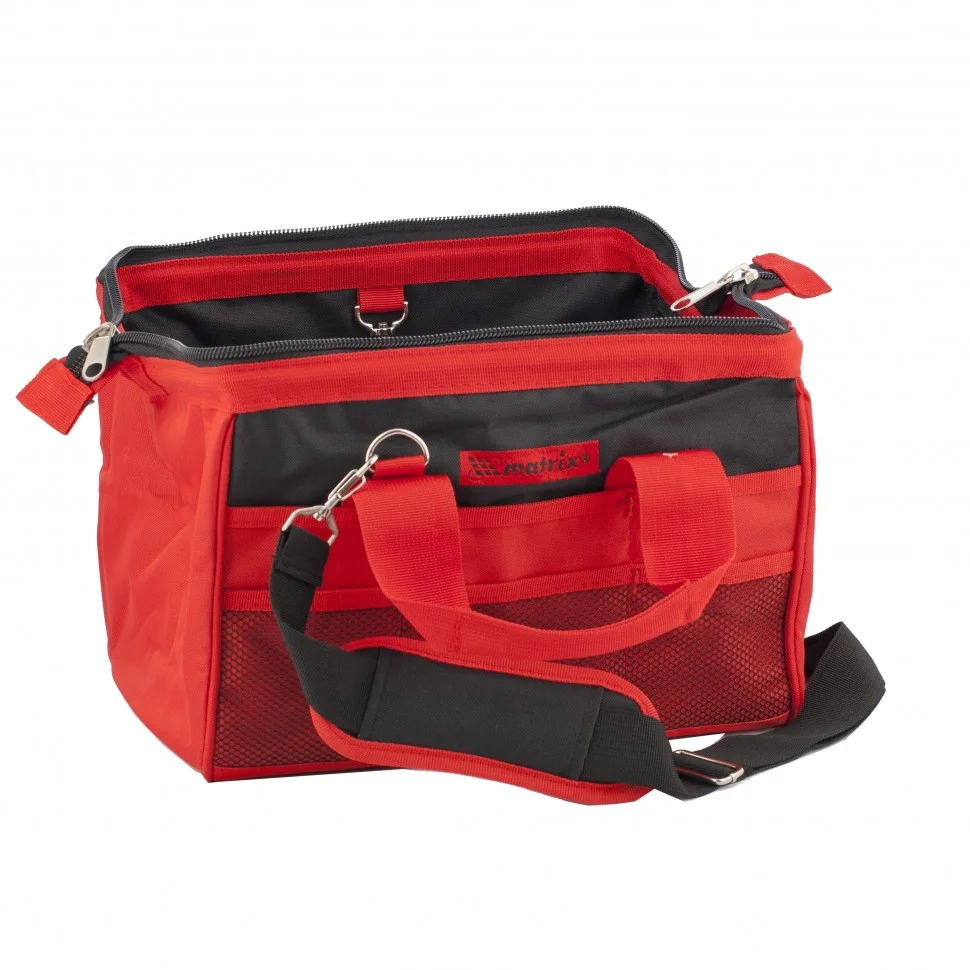 Сумка Matrix 90259 с 18 карманами, 320 х 215 х 250 мм, предназначена для транспортировки и хранения слесарных или столярных инструментов. Может использоваться для перевозки автопринадлежностей. В ней 18 карманов и вместительное основное отделение, в которых можно разместить инструменты разного размера. Сумка комплектуется наплечным ремнем с расширяющей накладкой для удобства переноски. Пригодится монтажникам, слесарям, строителям, будет полезна дома и в поездке.ПреимуществаСумка изготовлена из износостойкого синтетического материала (полиэстера), поэтому рассчитана на длительную эксплуатацию.Полиэстер водонепроницаем, а значит, на инструменты не попадет влага даже при работе под открытым небом.Удобные ручки облегчают транспортировку сумки.
