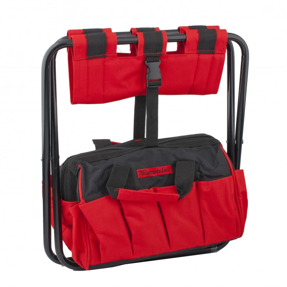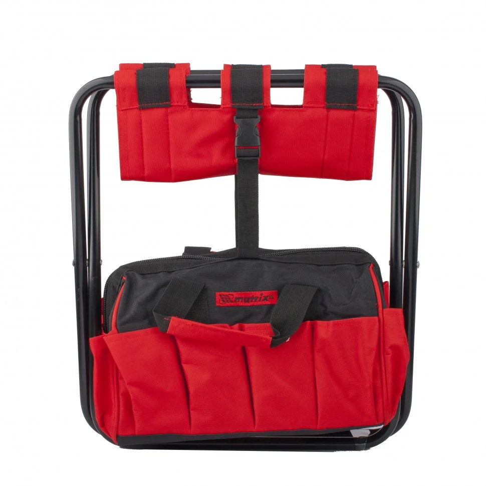 Складная сумка-стул Matrix 90249, 420 х 280 х 385 мм, — многофункциональное приспособление, позволяющее хранить и переносить инструменты и снаряжение, а также всегда иметь при себе удобный предмет рабочей или туристической мебели. Установить его можно за несколько секунд. Сумка-стул пригодится во время пикника и рыбалки, а также облегчит работу в саду и огороде.ПреимуществаСумка-стул изготовлена из износостойкого синтетического материала и прослужит долго.Складной стул комплектуется сумкой с вместительным основным отделением и большим количеством карманов, в которых поместятся все необходимые инструменты.Сумка пристегивается к стулу надежными пластиковыми фастексами, которые выдерживают значительные нагрузки.Изделие имеет прочный металлический каркас и выдерживает вес до 90 кг.Стул легко отстегивается от сумки, и их можно использовать отдельно.Сумка-стул весит 1,775 кг и в сложенном виде занимает мало места, поэтому удобен для хранения и транспортировки.