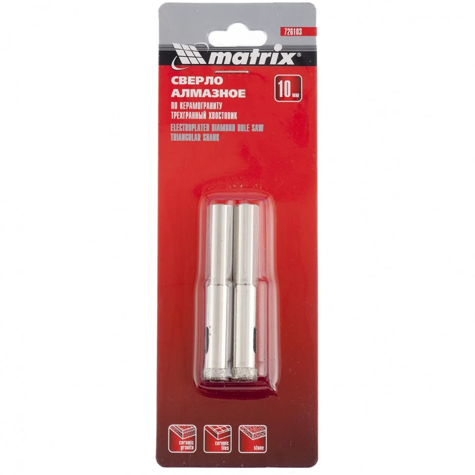 Сверло алмазное по керамограниту, 10 х 67 мм, трехгранный хвостовик, 2 шт Matrix 726103