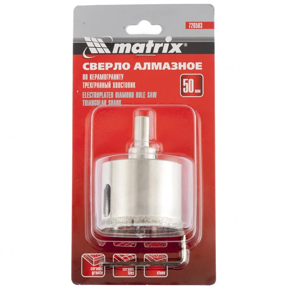 Сверло алмазное по керамограниту, 50 х 67 мм, трехгранный хвостовик Matrix 726503