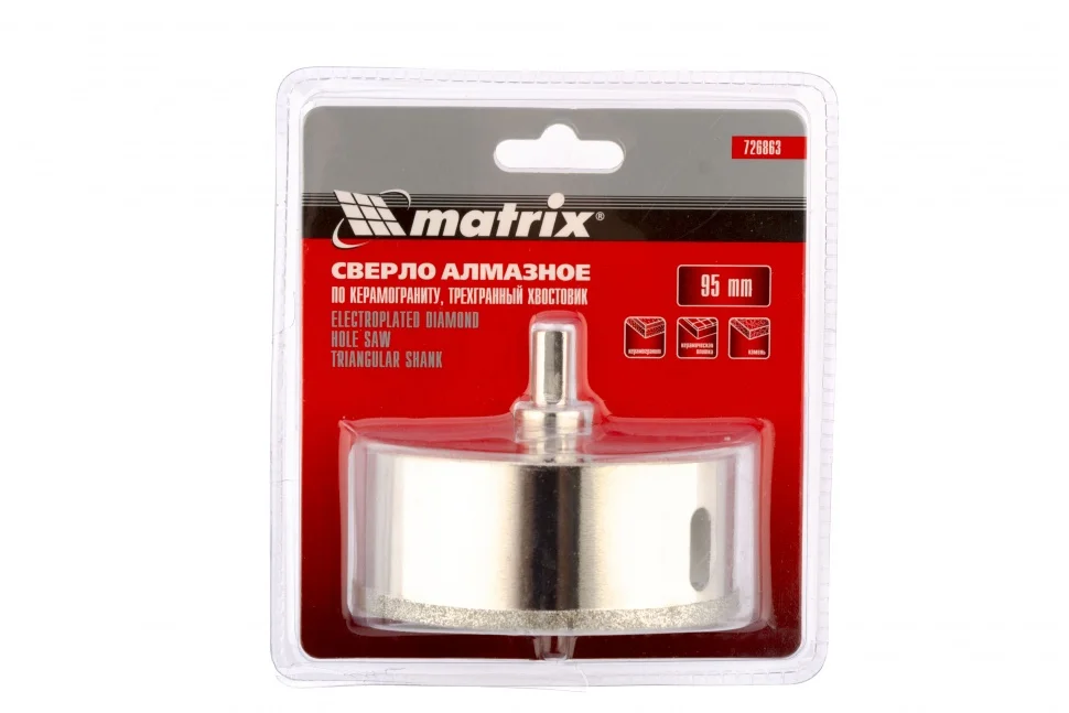 Сверло алмазное по керамограниту, 95 х 67 мм, трехгранный хвостовик Matrix 726863