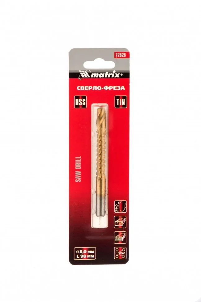 Сверло-фреза, Matrix 8 мм, универсальное, нитридтитановое покрытие, цилиндрический хвостовик 72828