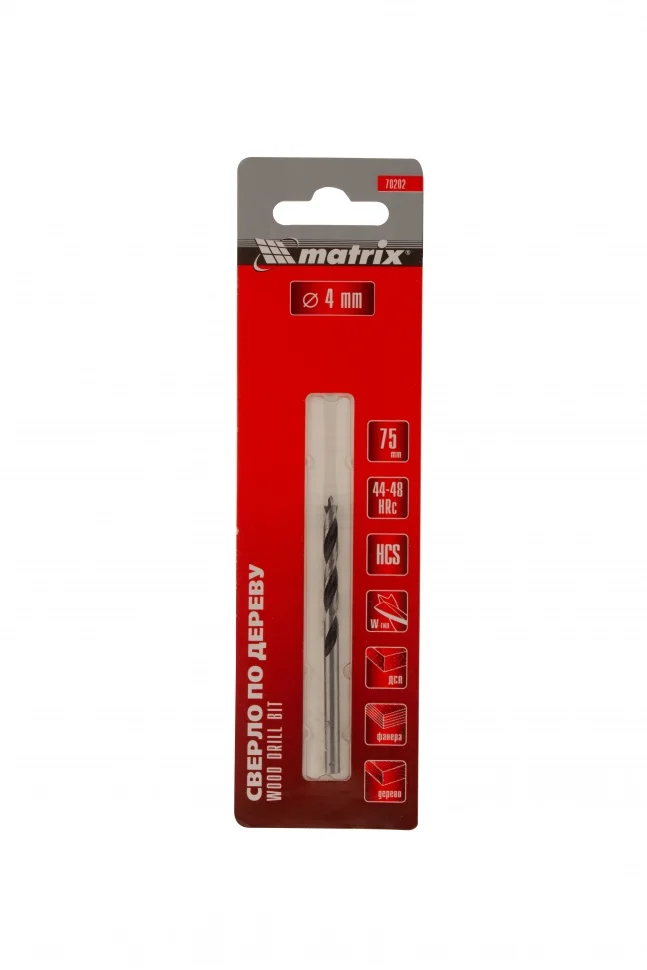 Сверло по дереву, 4 x 75 мм, цилиндрический хвостовик Matrix 70202