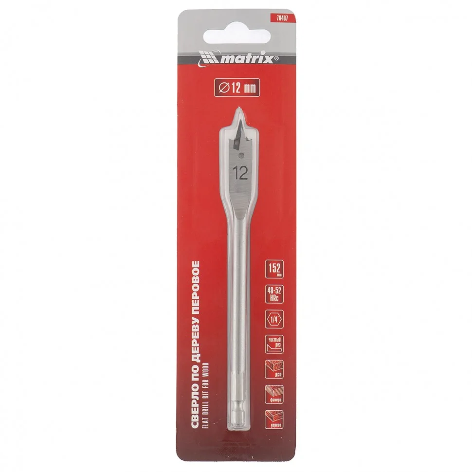 Сверло по дереву перовое, 12 мм, шестигранный хвостовик Matrix 70407