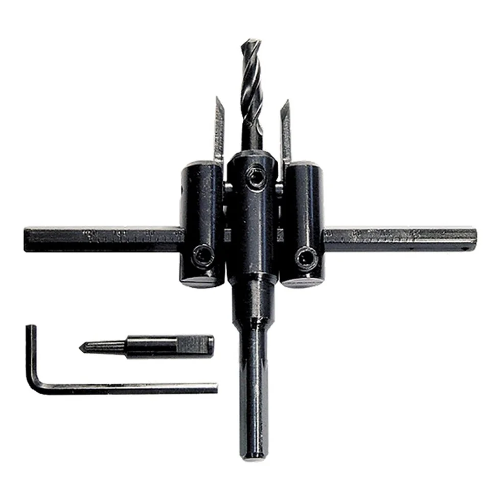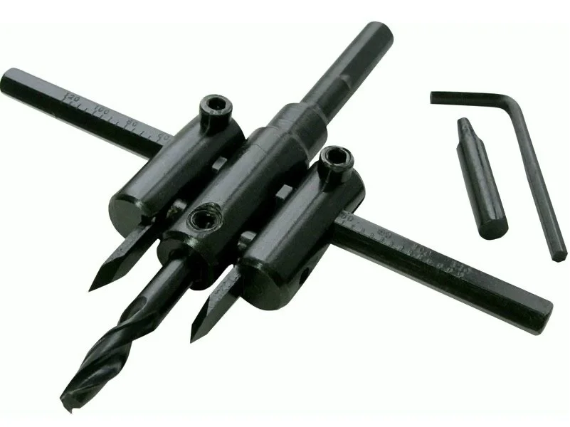 Сверло из углеродистой стали предназначено для высверливания отверстий большого диаметра. Режущие пластины перемещаются по горизонтальной направляющей относительно сверла-сердечника на расстояние до 120 мм. В комплект поставки входит ключ.
